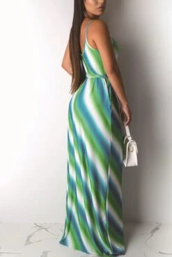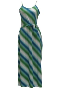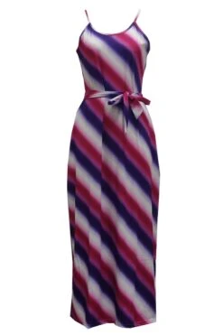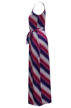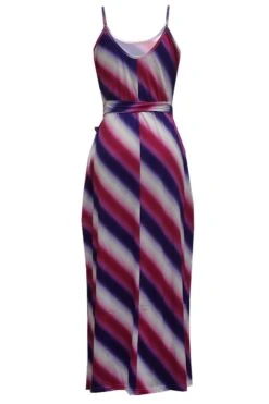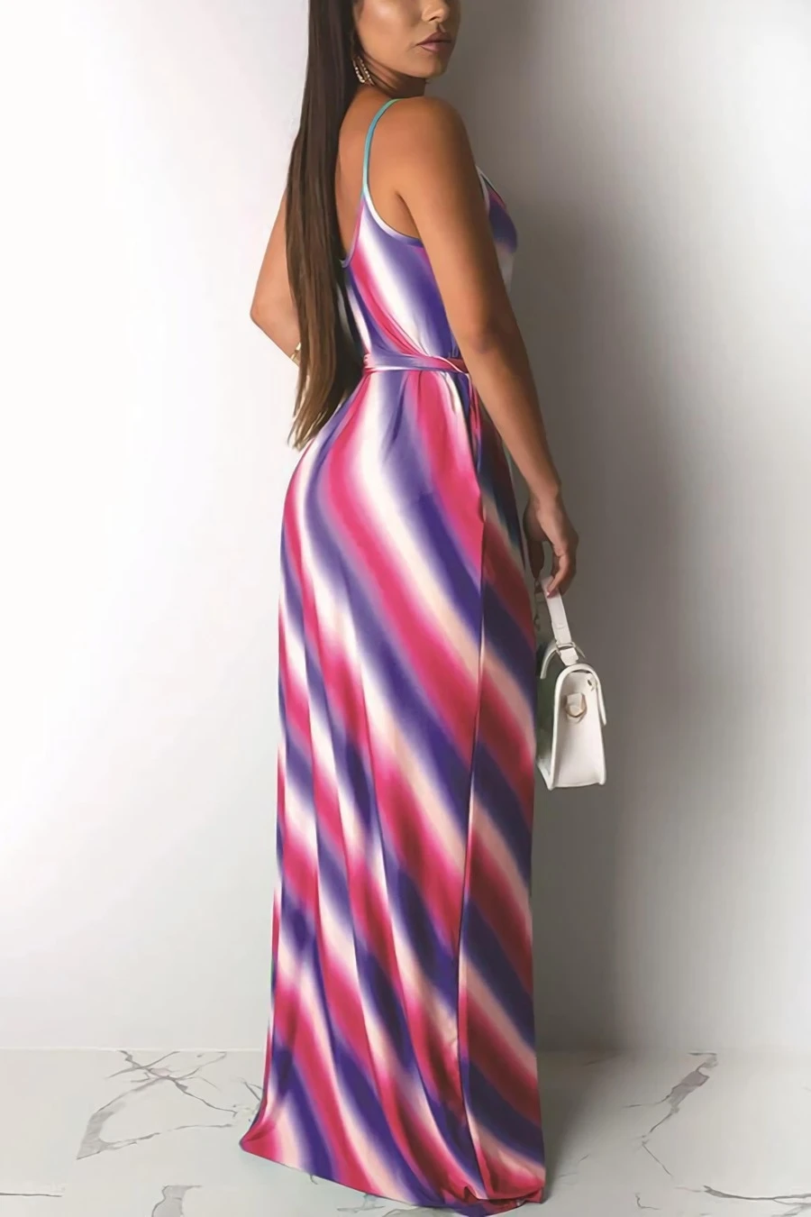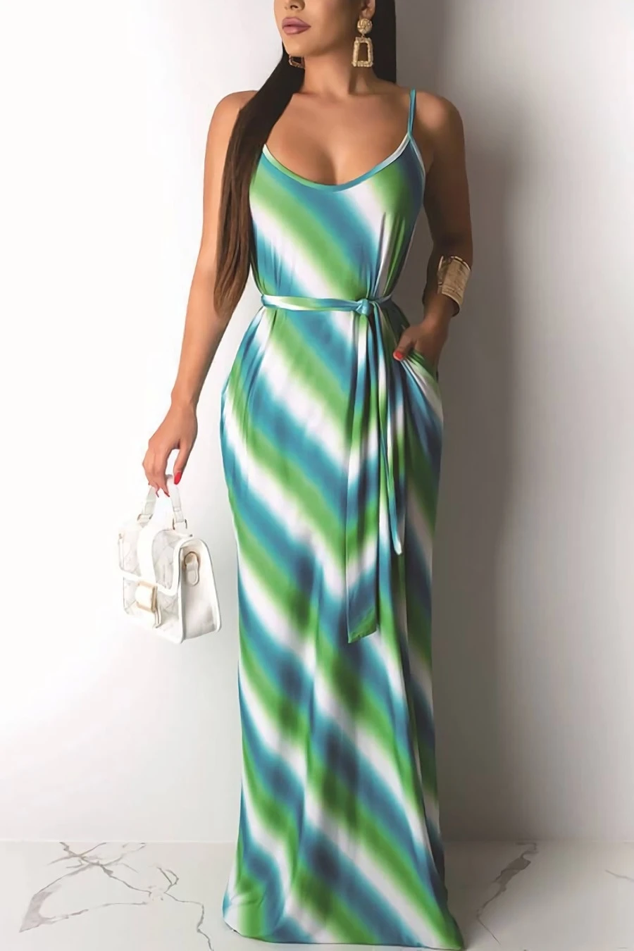 S-3XL summer new plus size two colors stripe tie dye printing stretch sling pockets floor length loose stylish casual maxi dress with belt
