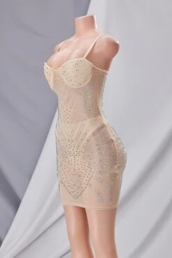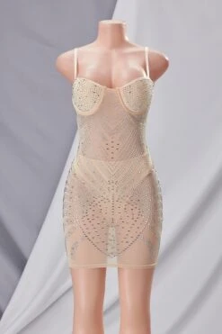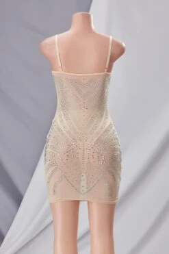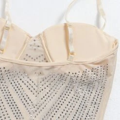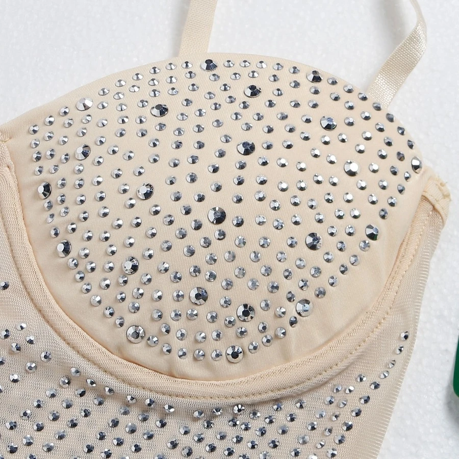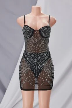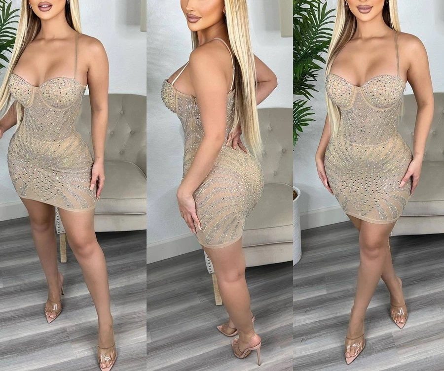 S-3XL summer new stylish rhinestone see-through mesh backless stretch slim adjustable sling sexy mini dress (with panties)
