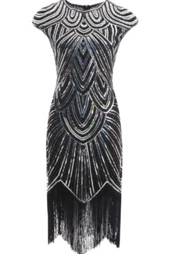 S-4XL plus size new stylish 9 colors sequins zip-up tassel slight stretch elegant midi evening dress