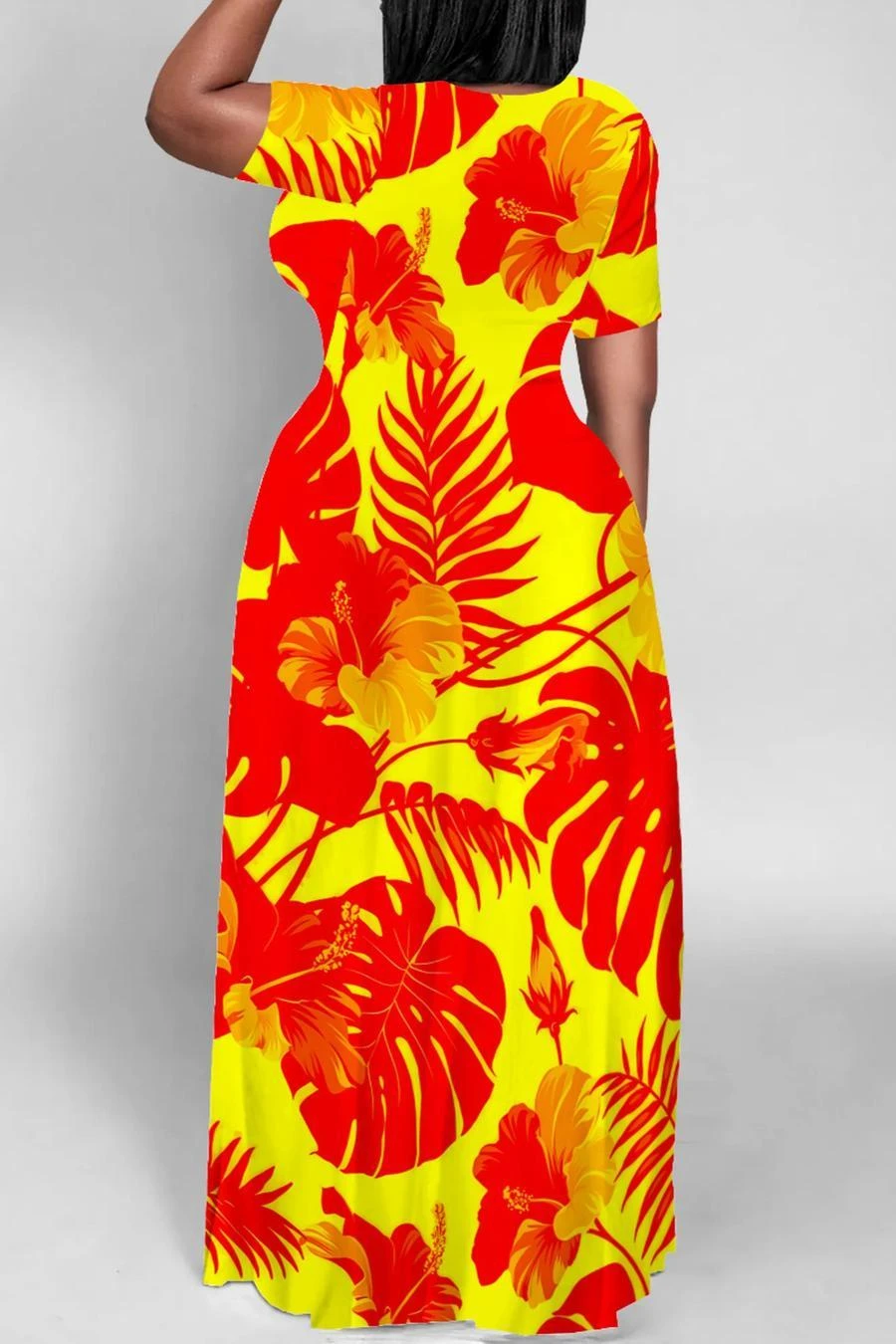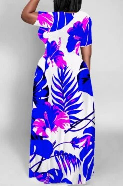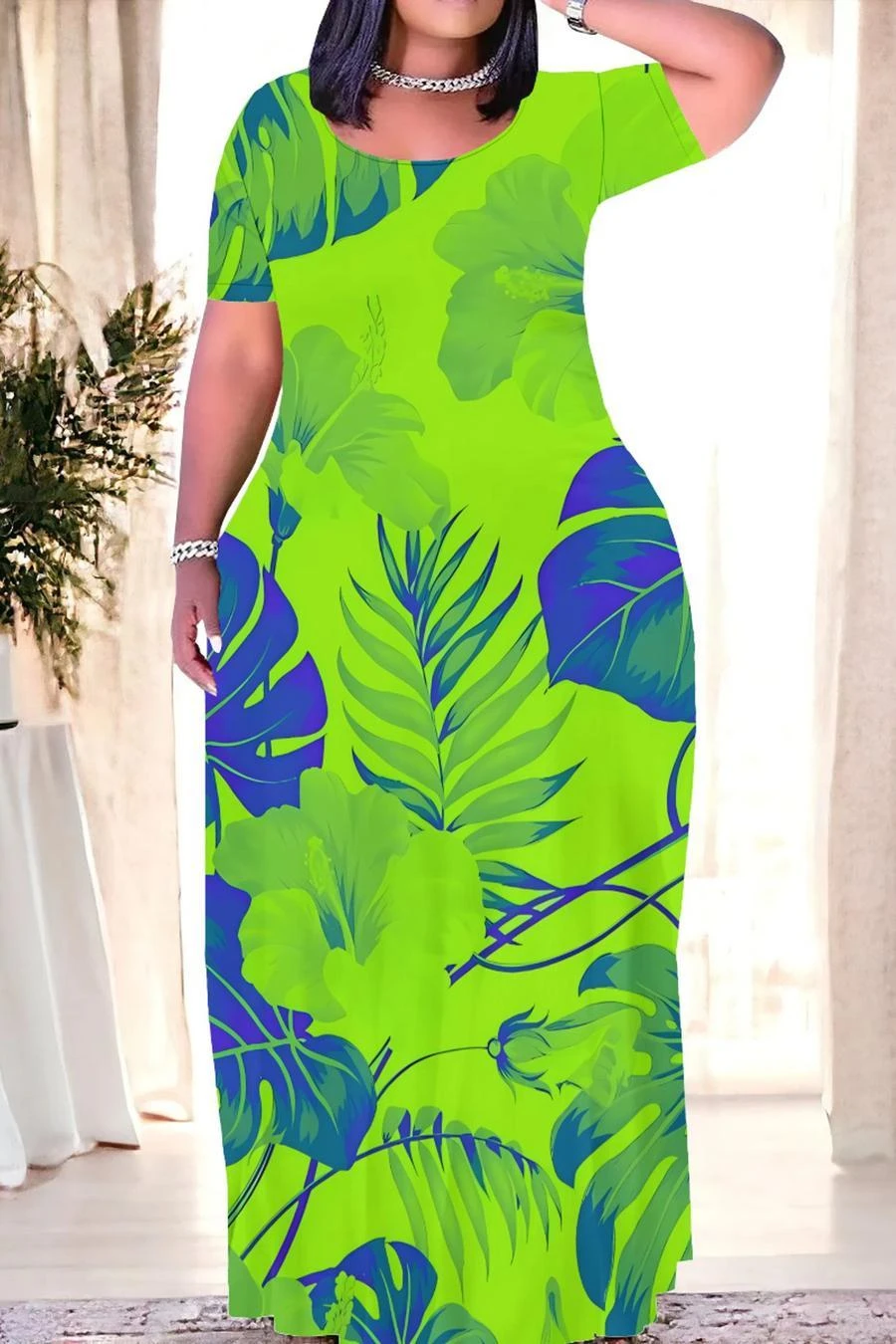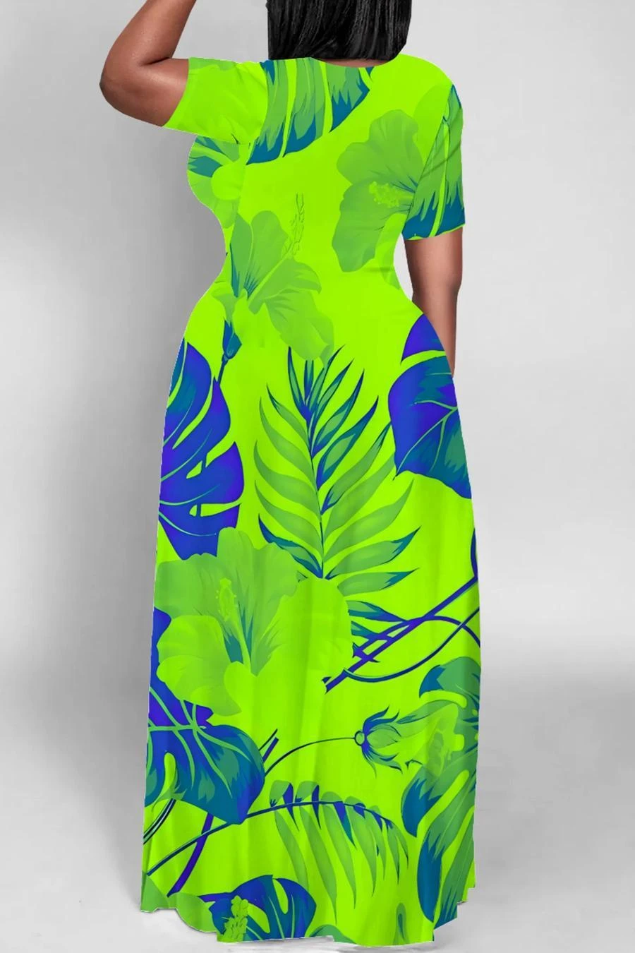 S-5XL casual slight stretch floral leaf printed maxi dress#1