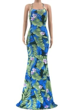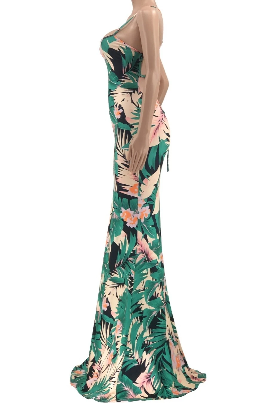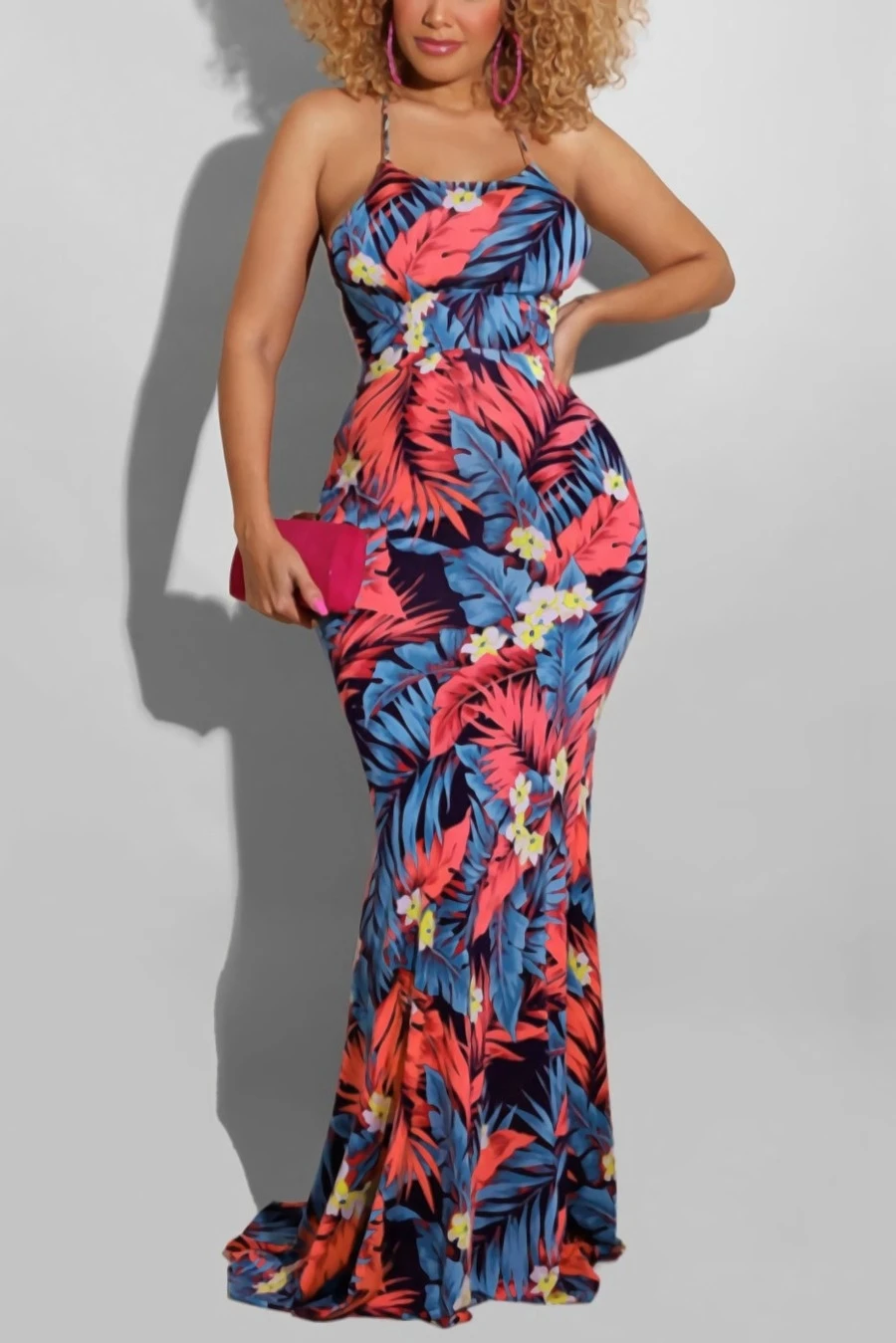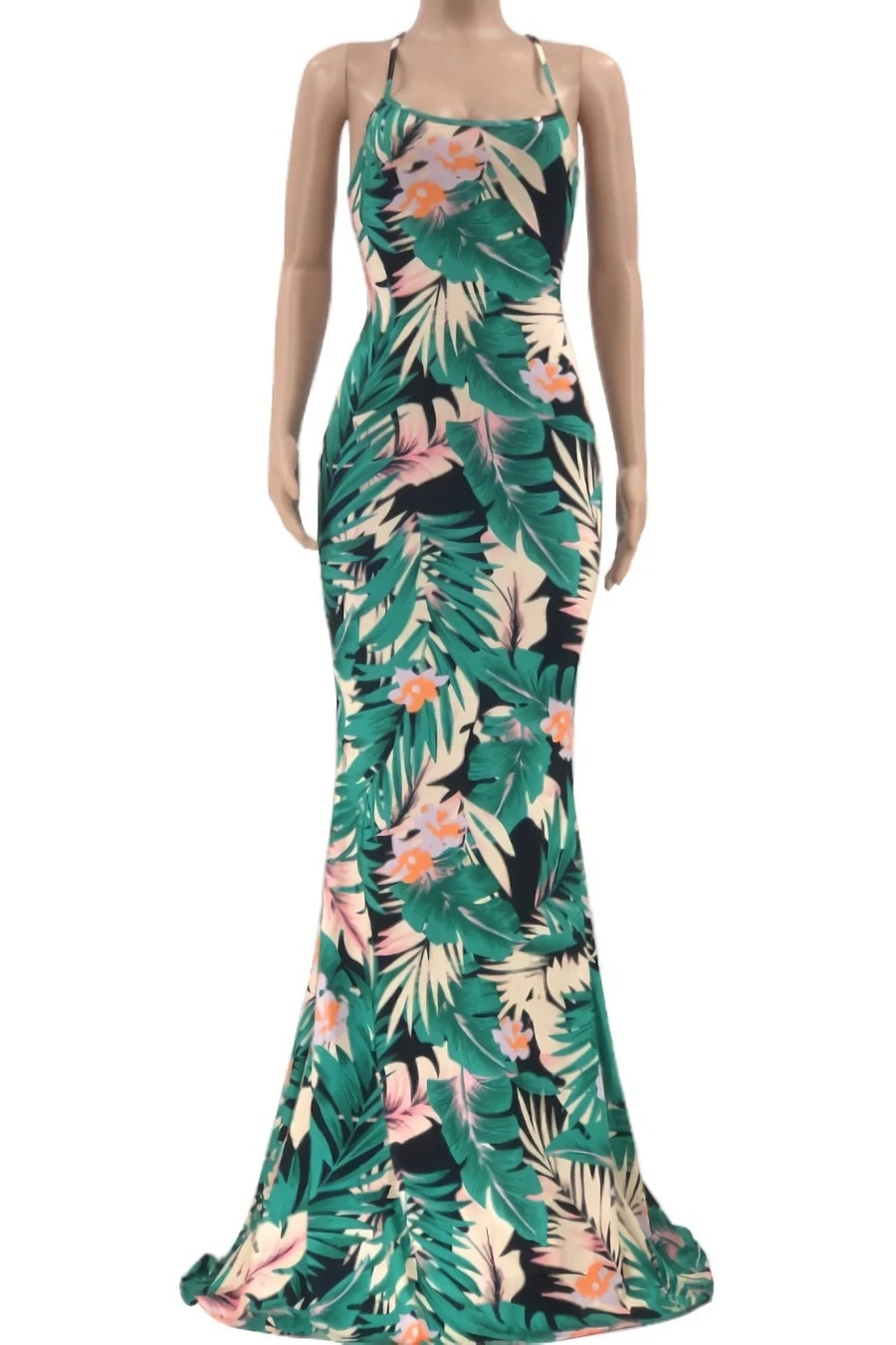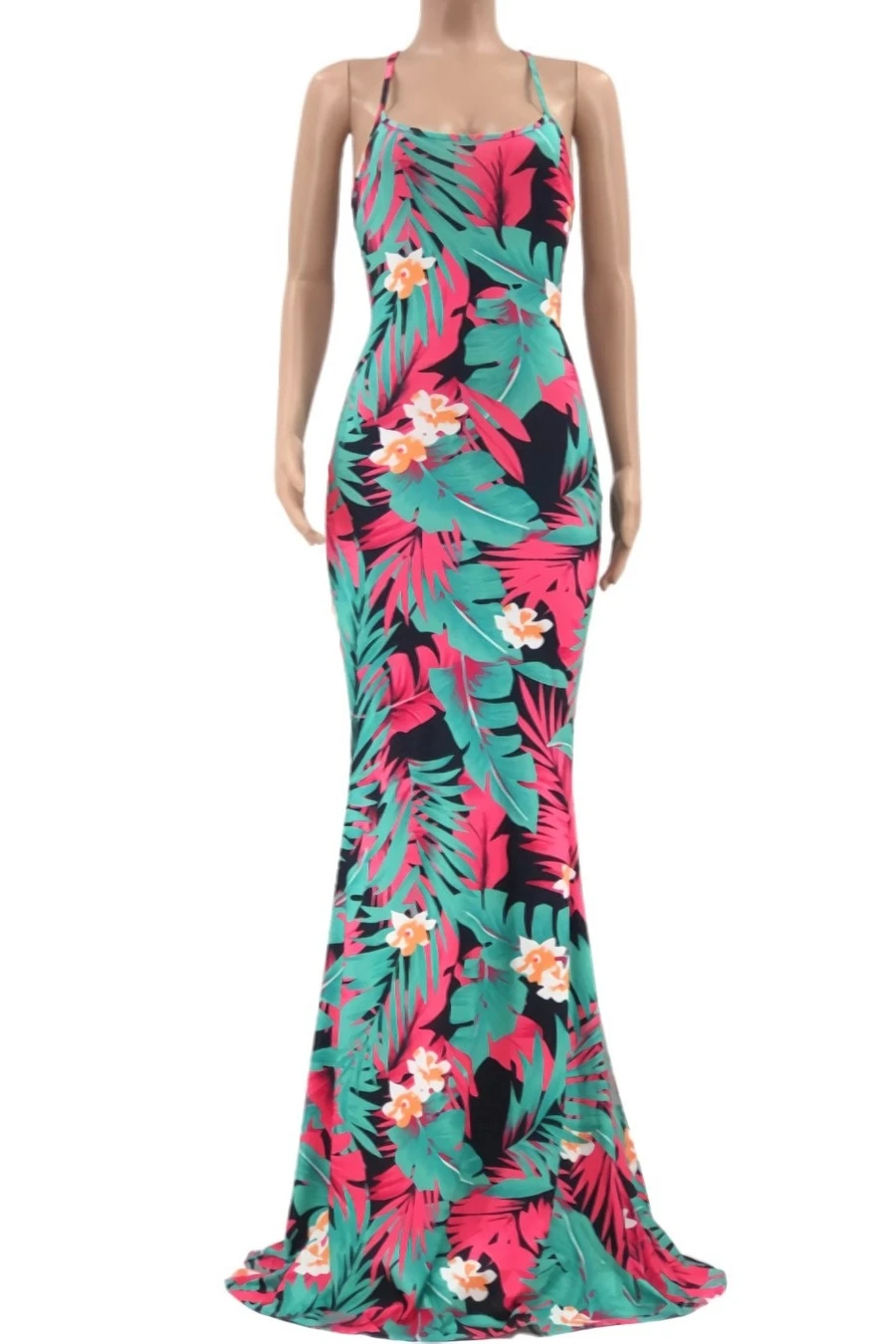 S-5XL summer new stylish five colors leaf flower printing backless lace-up stretch slim sexy maxi dress