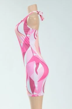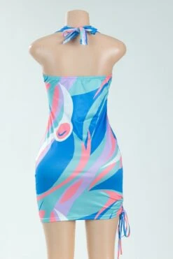 Sexy deep v halter-neck batch printing slim mini dress
