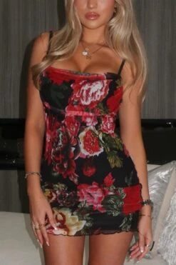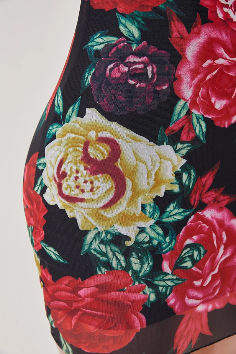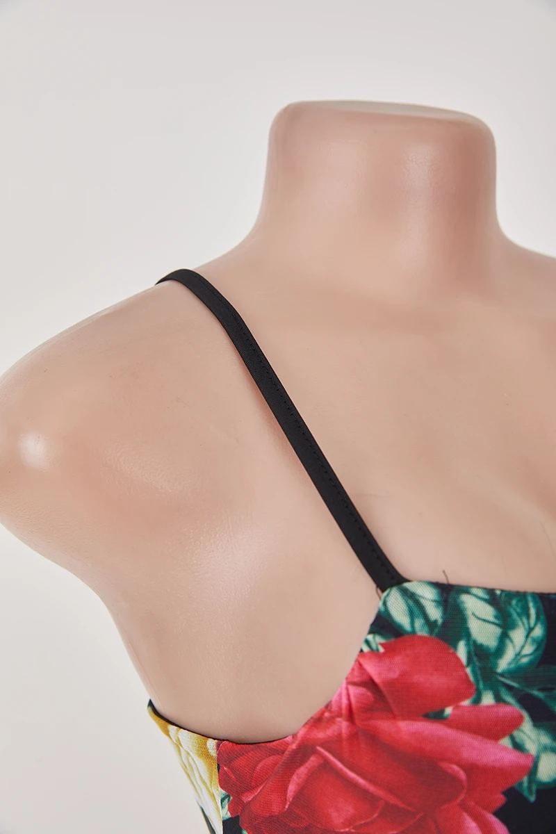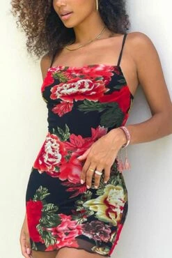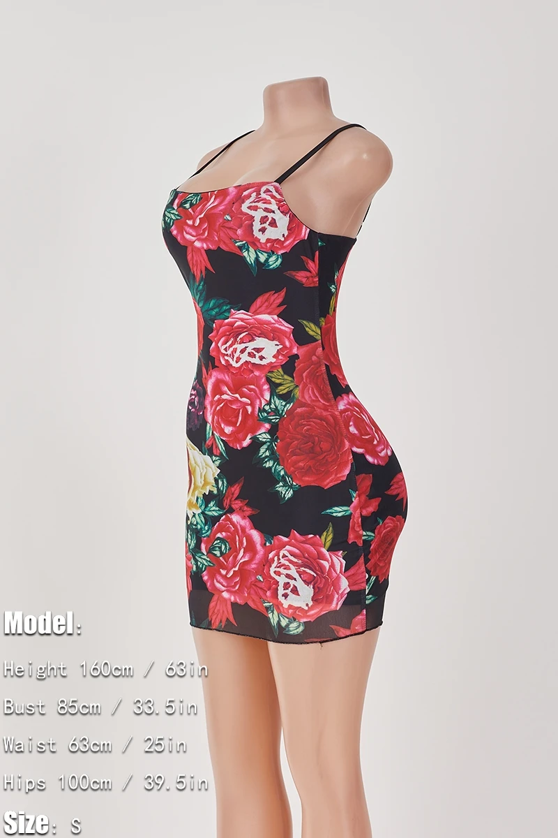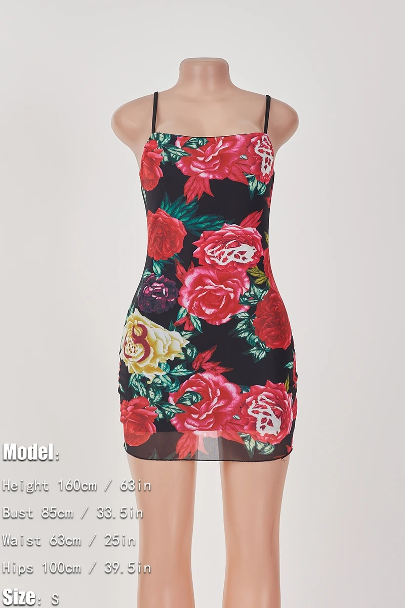 Sexy high stretch floral batch printing backless sling bodycon mini dress