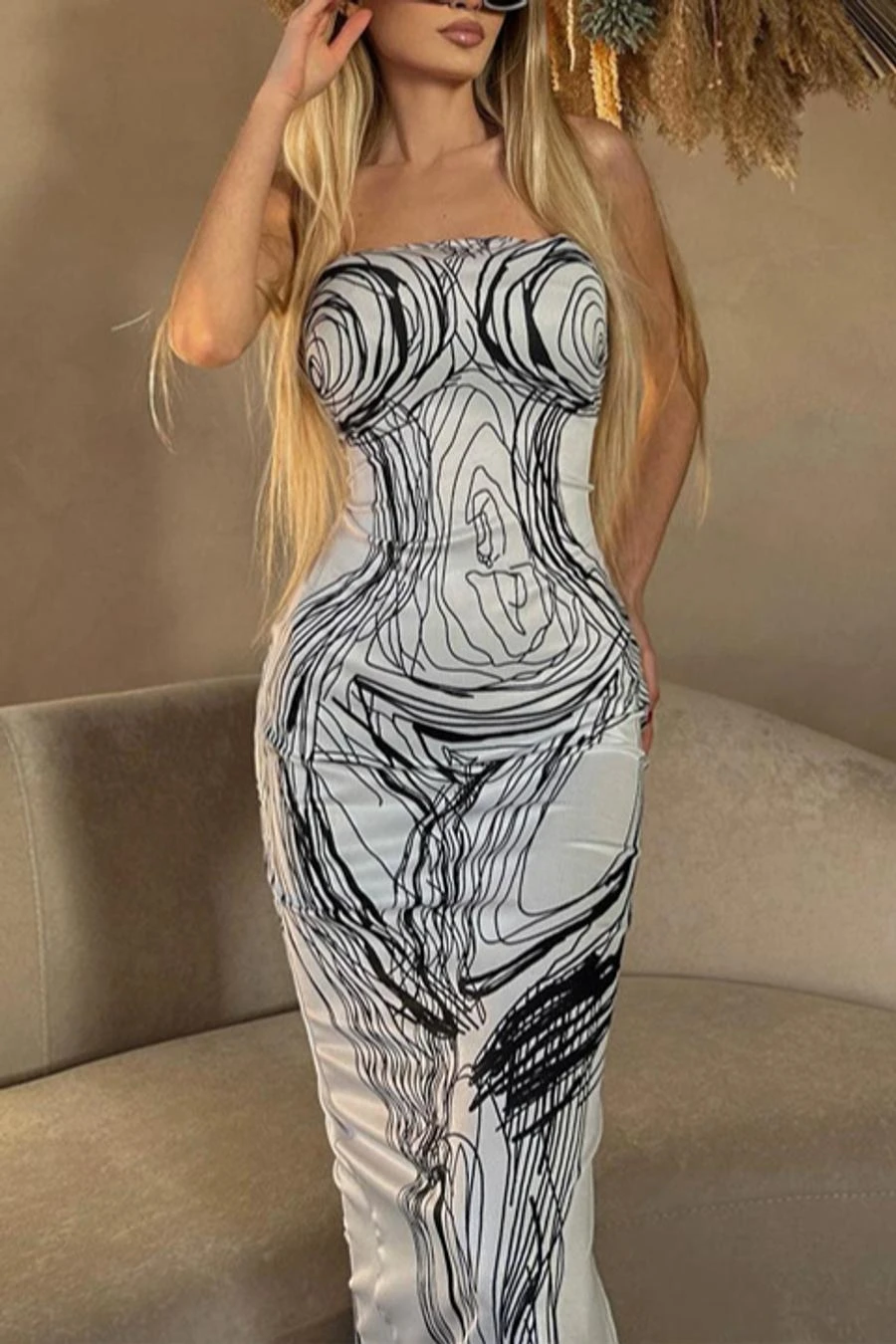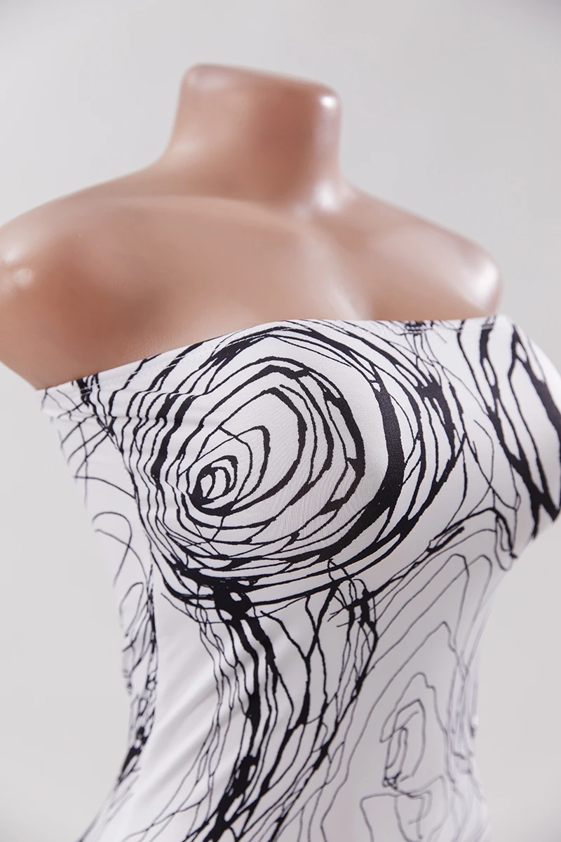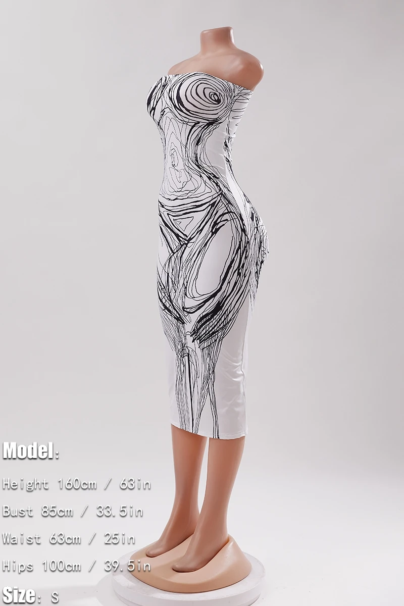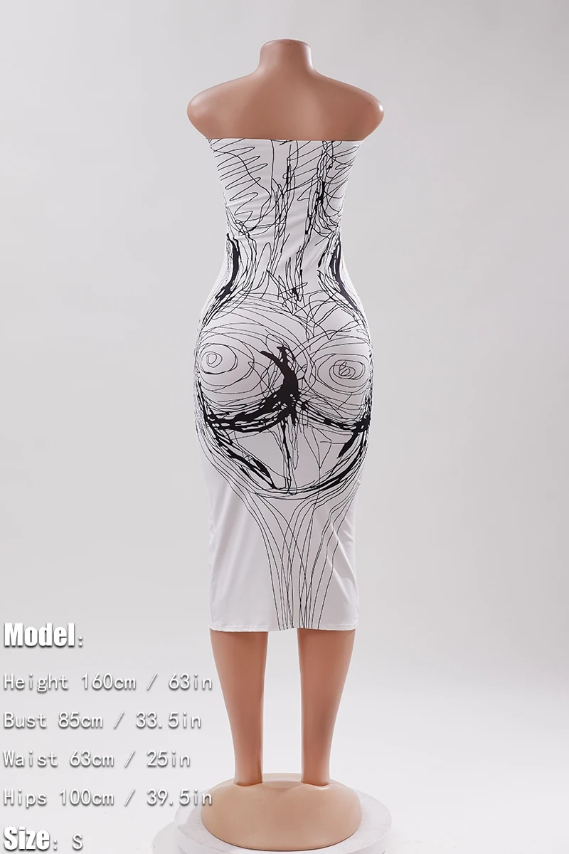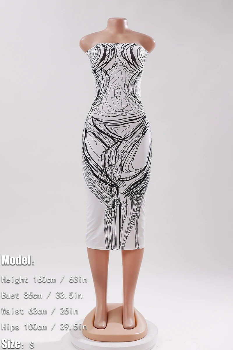 Sexy high stretch line printing tube design bodycon midi dress
