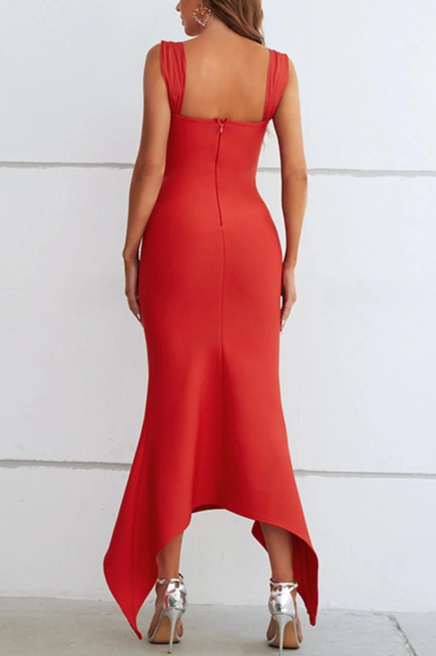 Sexy high stretch stappy zip-up irregular maxi dress