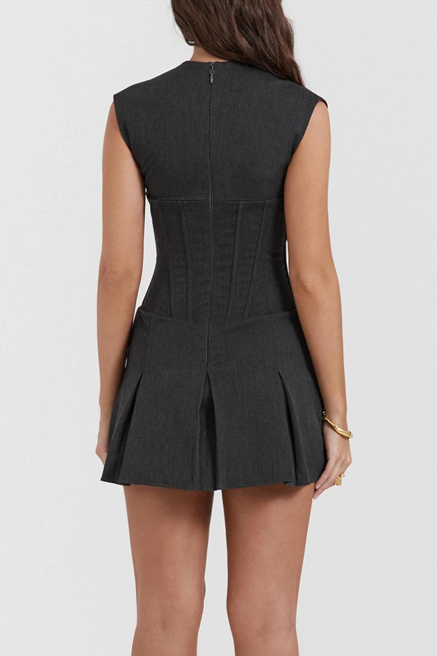 Sexy micro-stretch solid color deep v-neck with boned mini dress