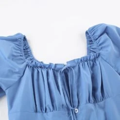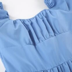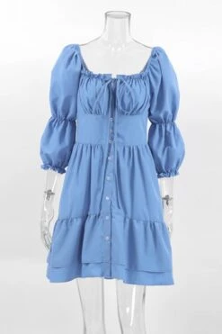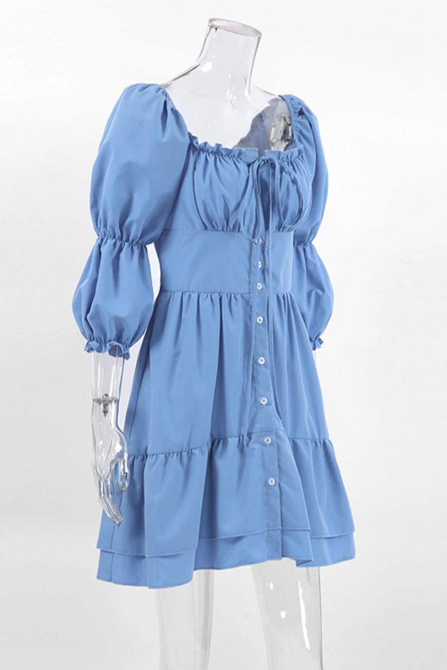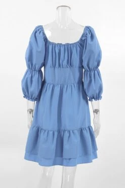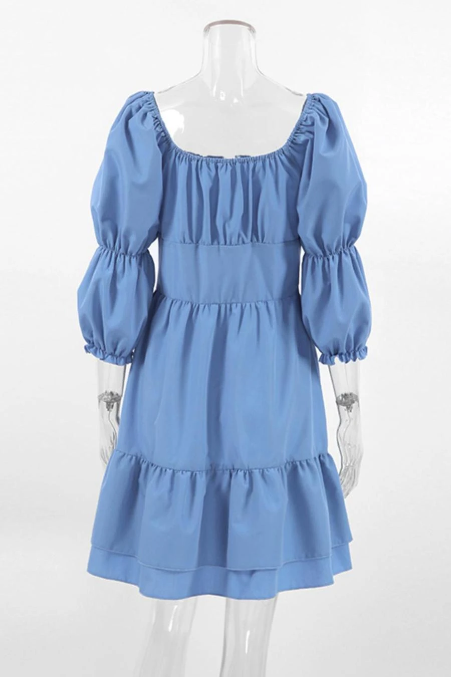 Sexy non-stretch 3 colors square-neck three-quarter sleeve backless midi dress
