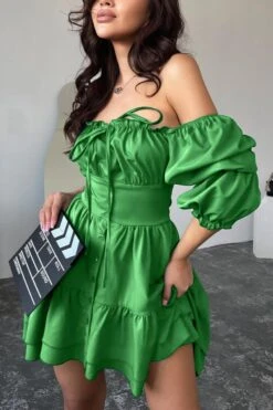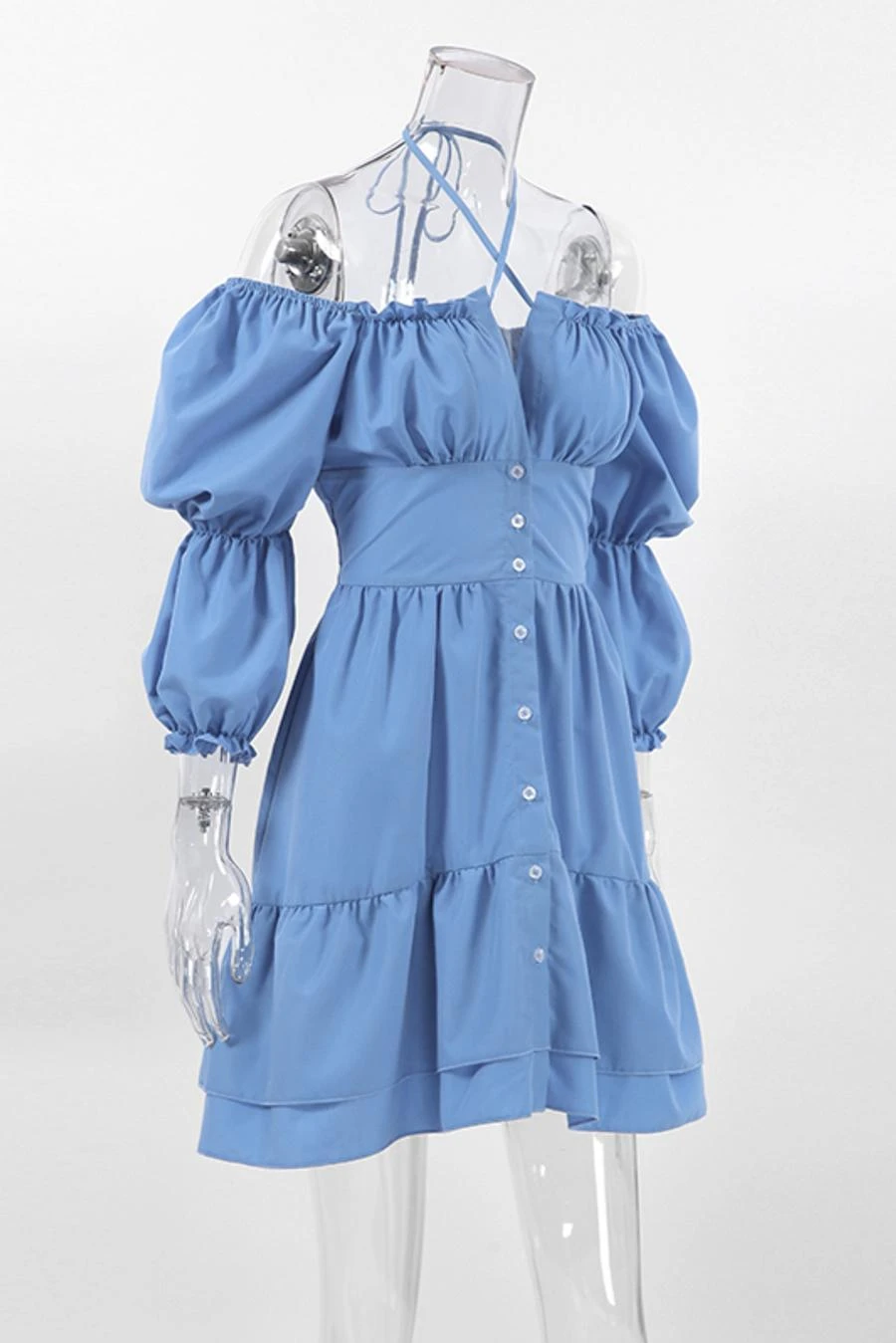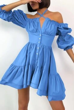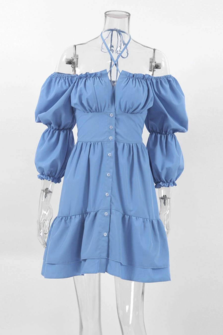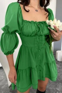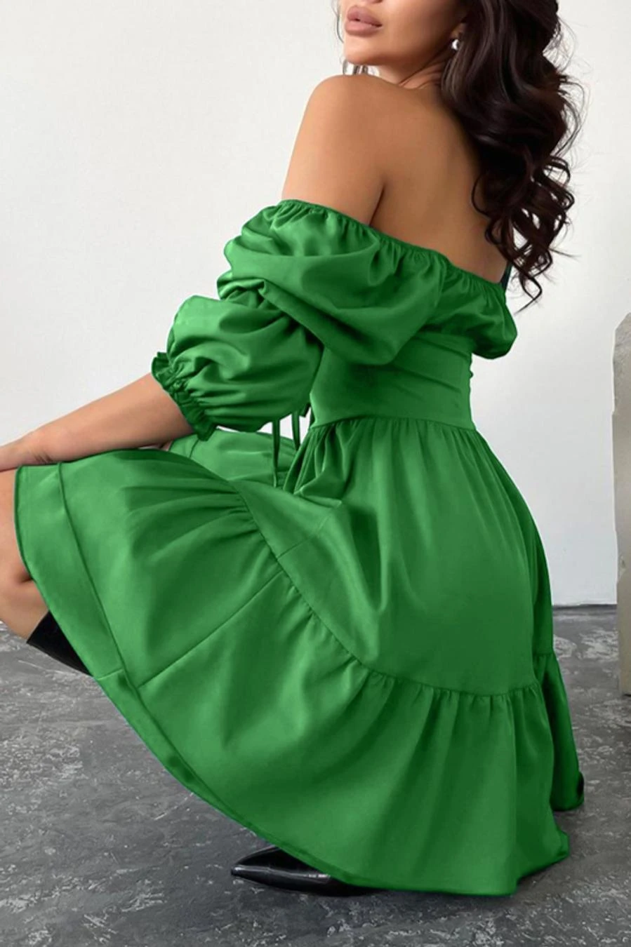 Sexy non-stretch 3 colors square-neck three-quarter sleeve backless midi dress