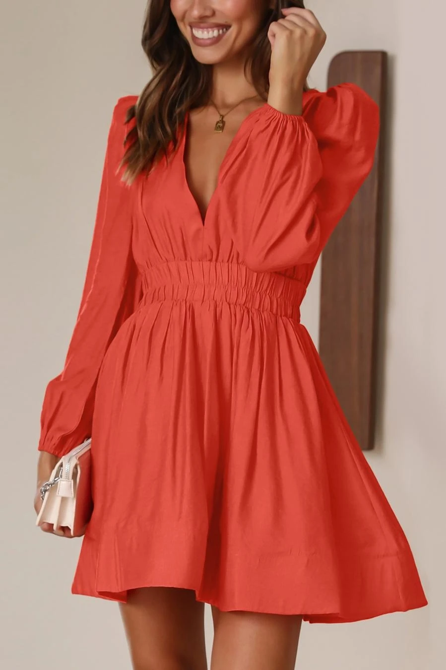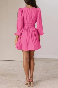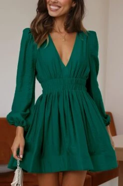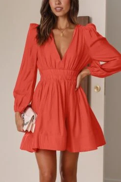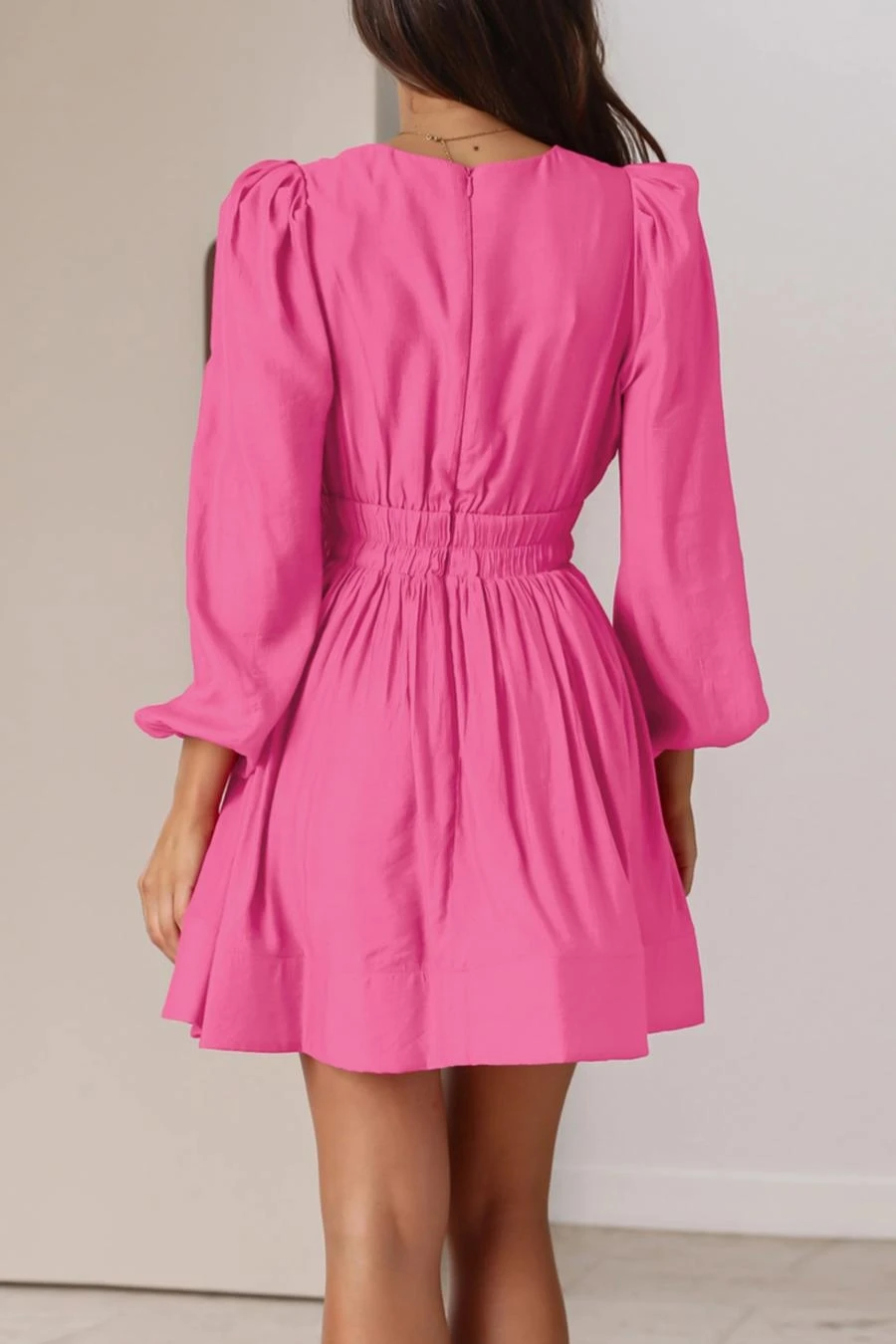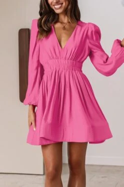 Sexy non-stretch 6-colors solid color zip-up deep v waist mini dress