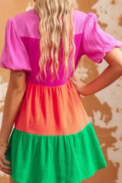 Sexy non-stretch cotton contrast color v-neck mini dress
