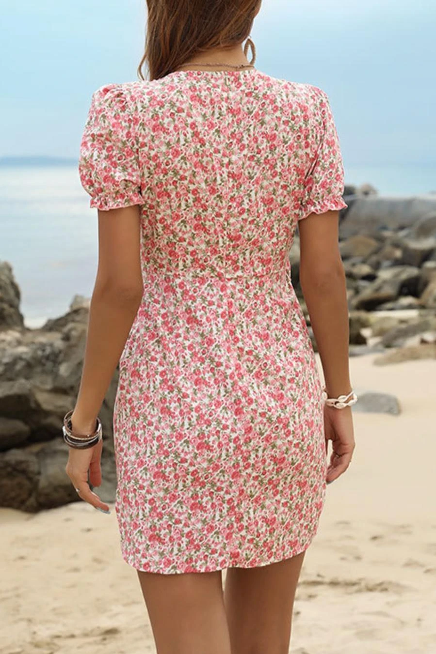 Sexy non-stretch floral batch printing lace-up mini dress