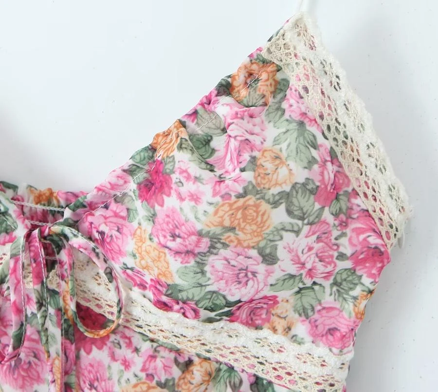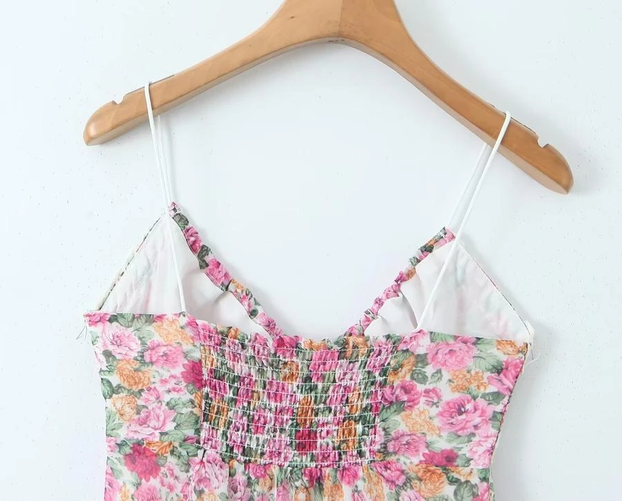 Sexy non-stretch floral batch printing sling shirring mini dress sizeĀ runĀ small