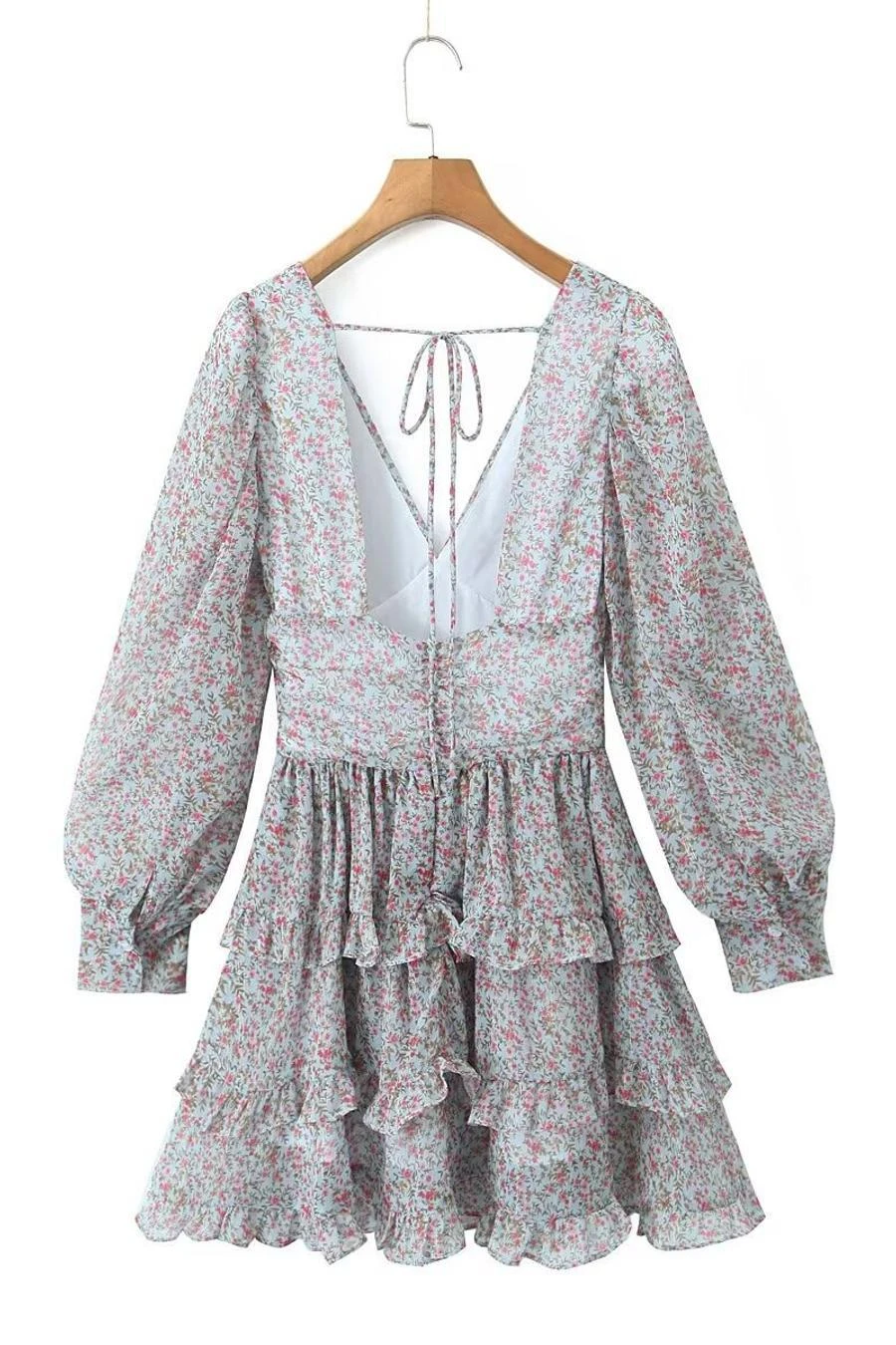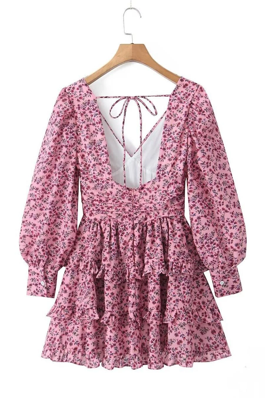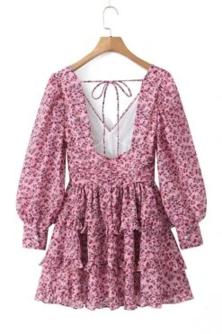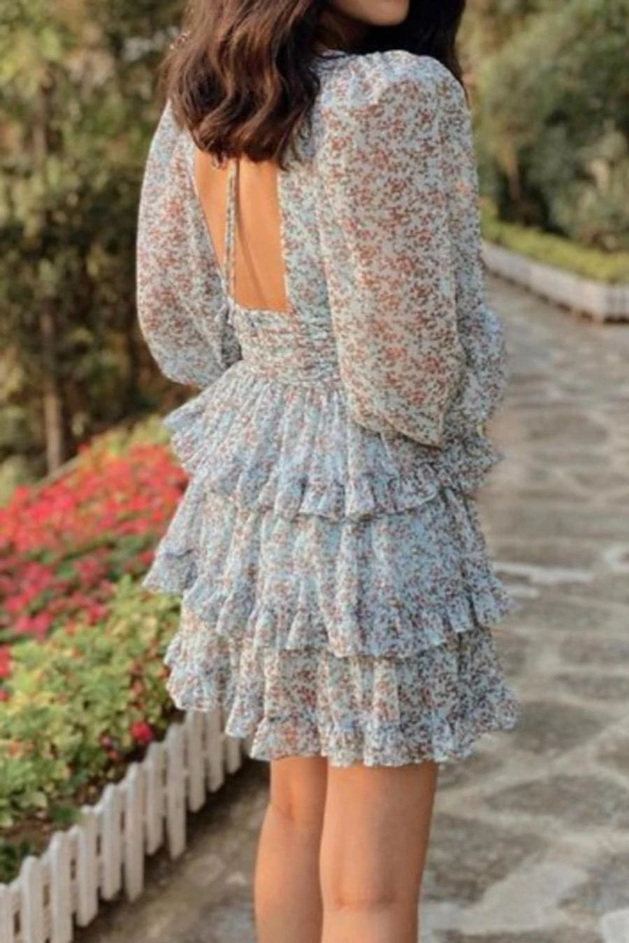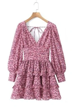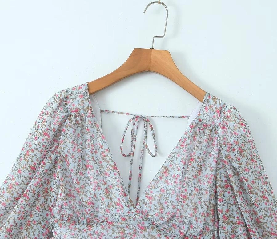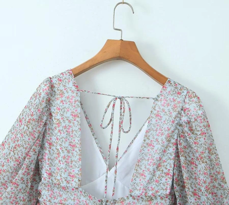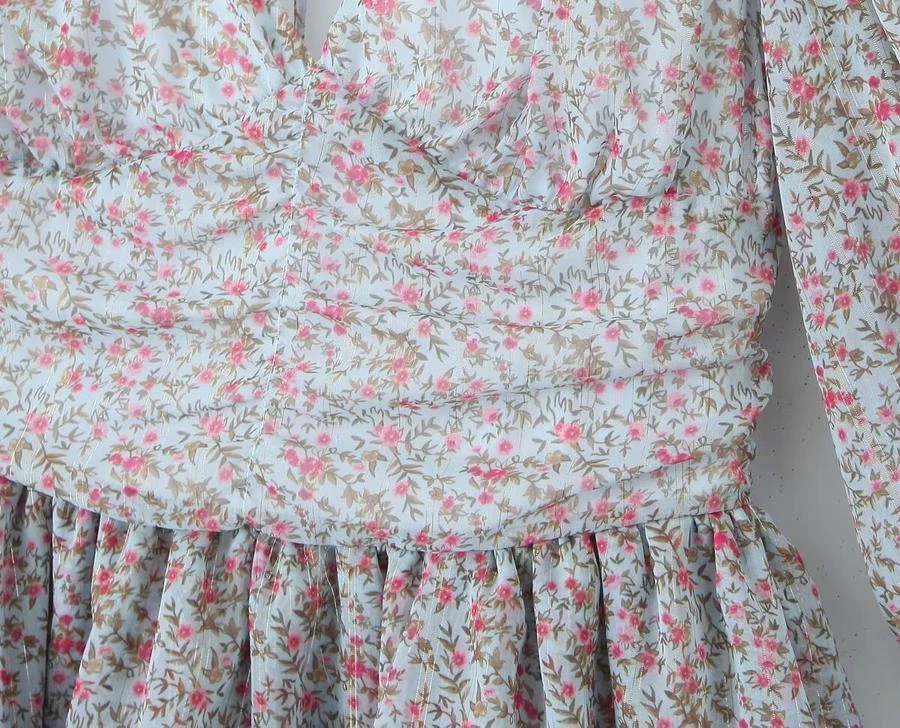 Sexy non-stretch floral print v-neck backless mini dress sizeĀ runĀ small