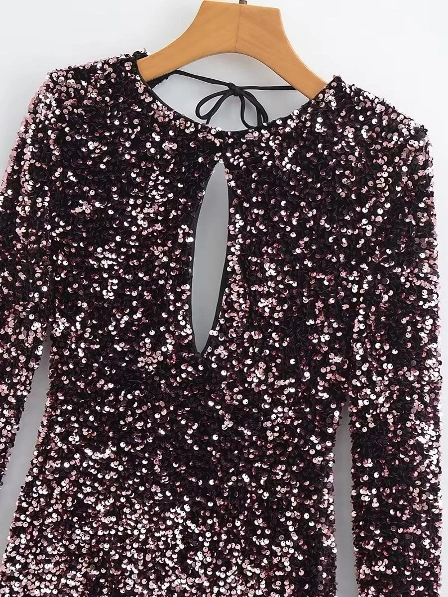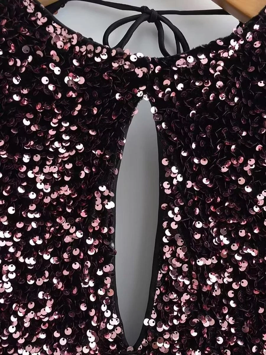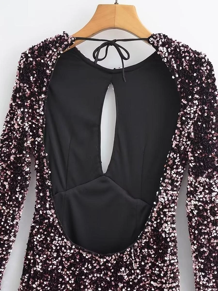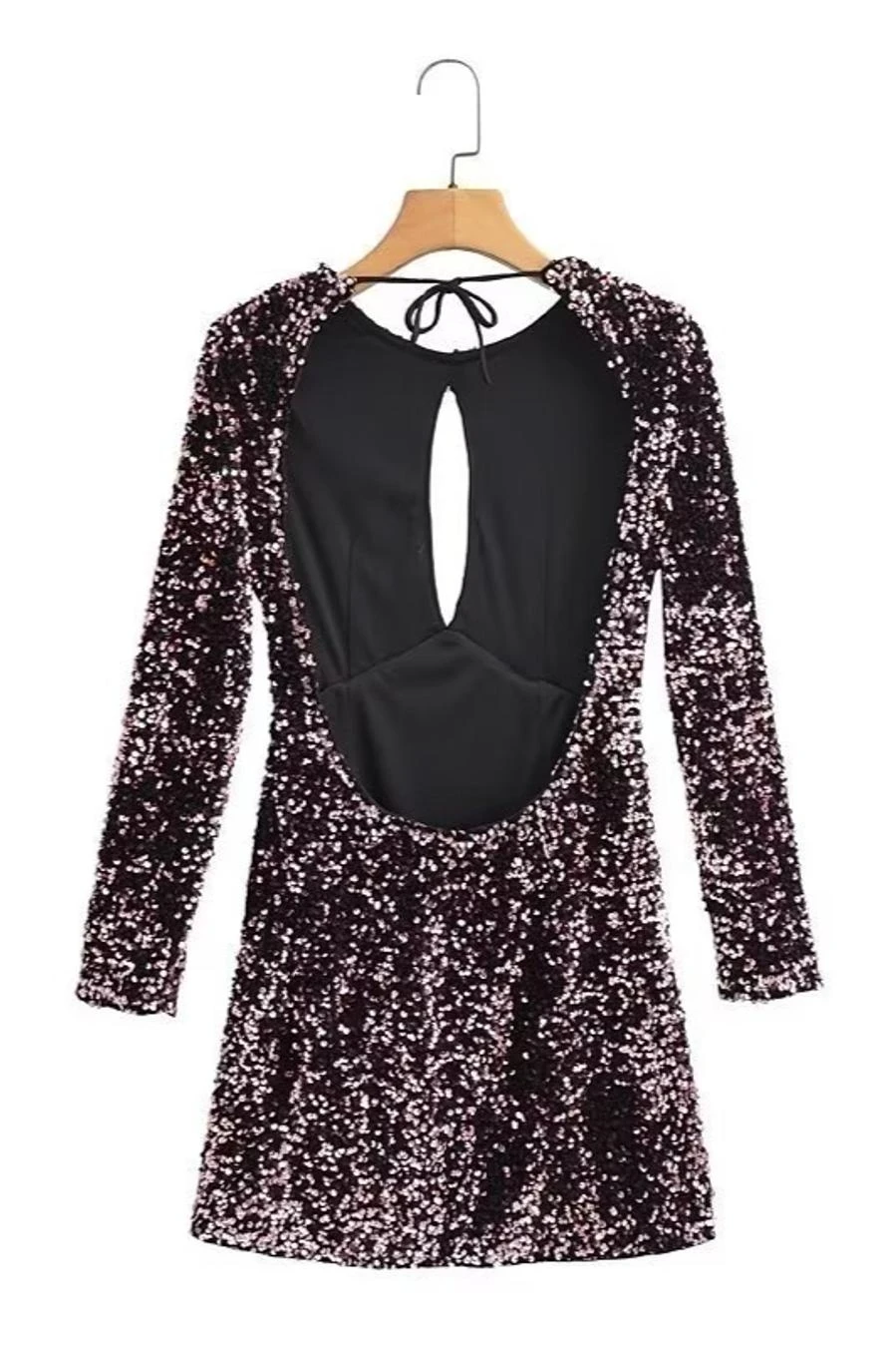Sexy non-stretch sequins slim hollow backless mini dress size run small