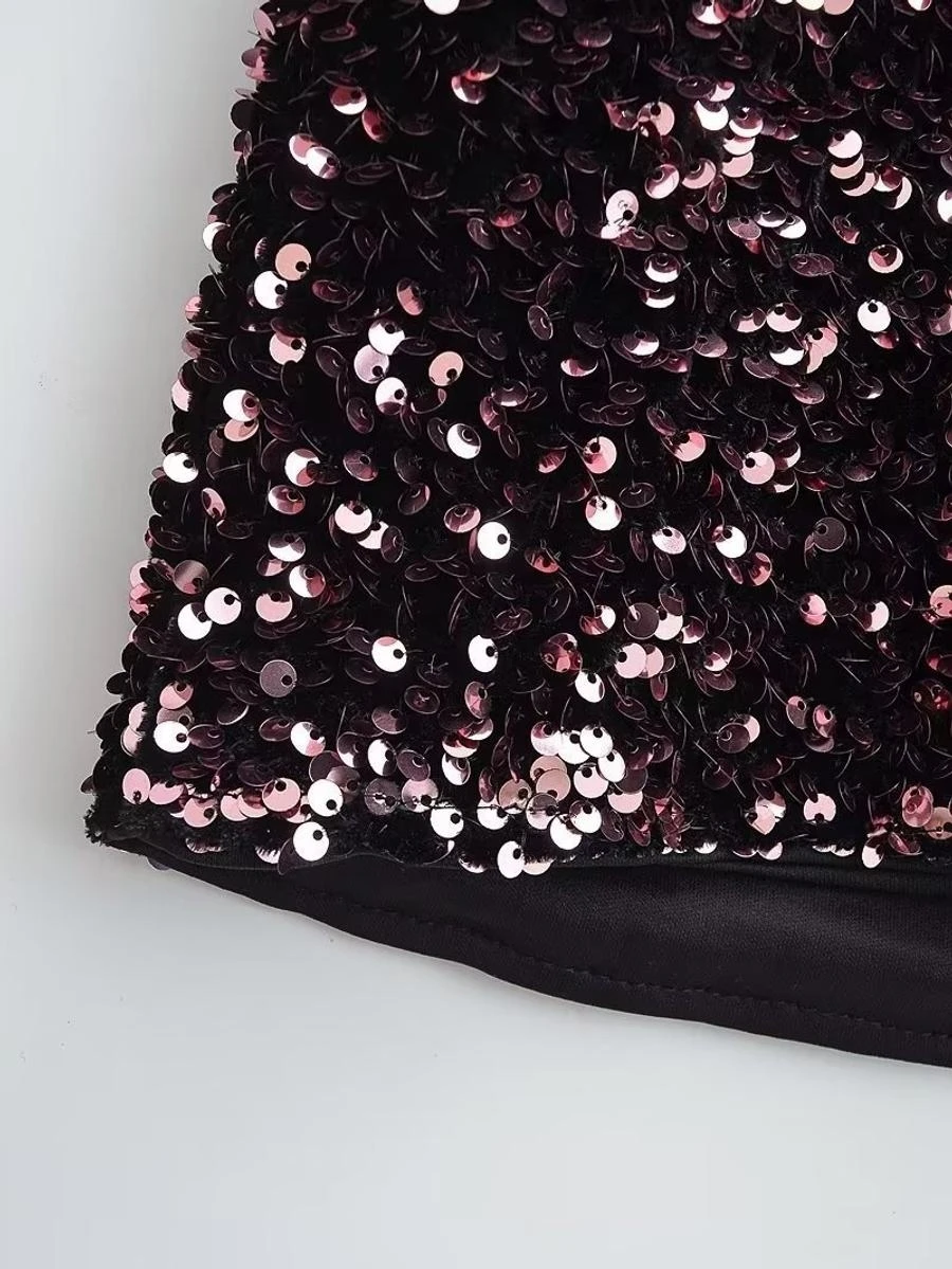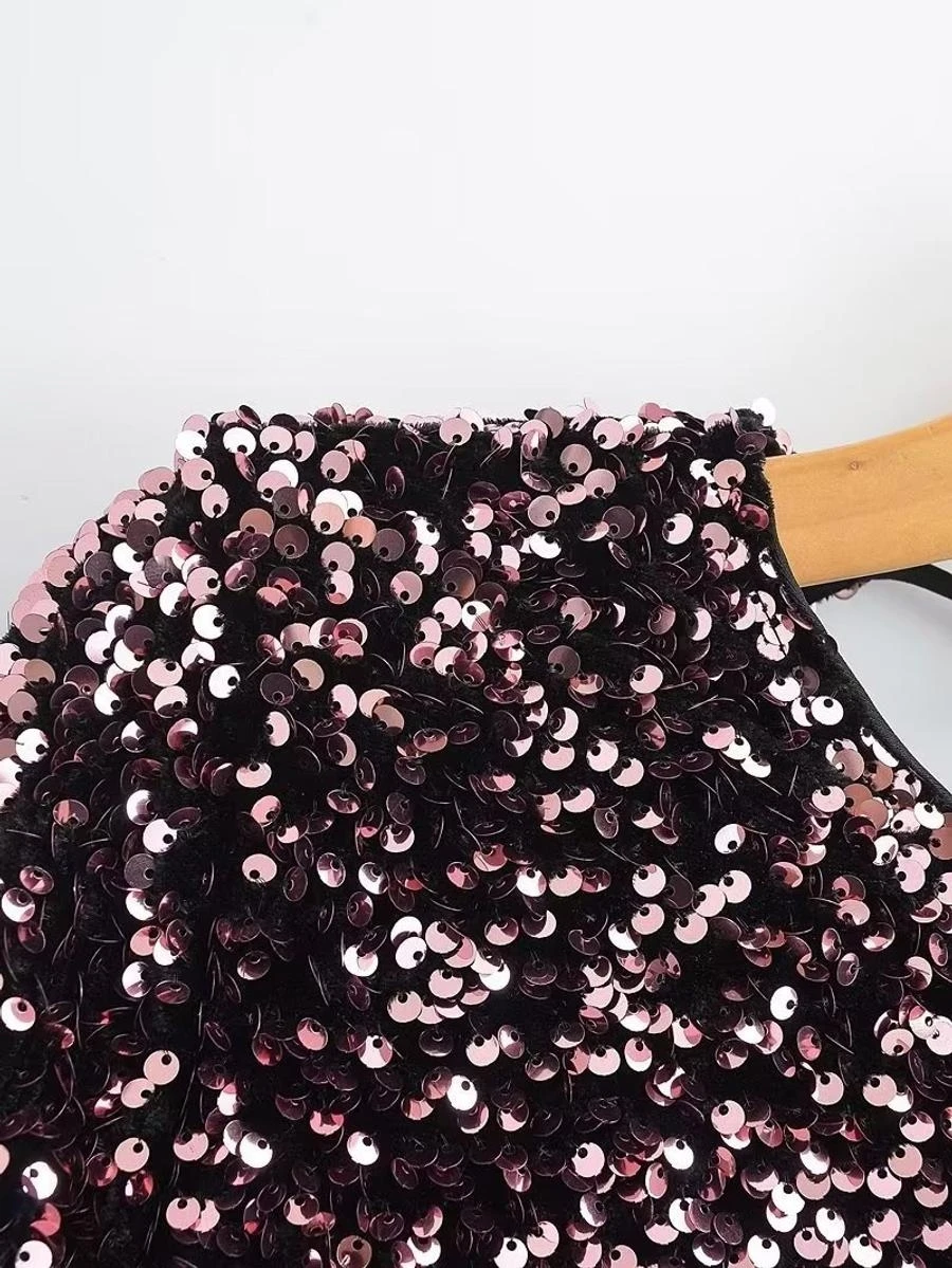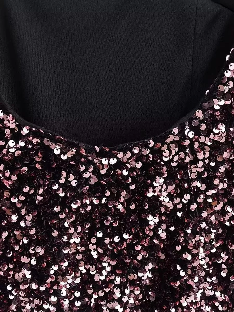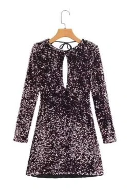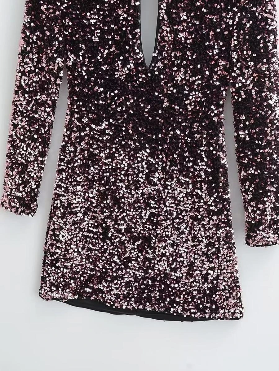 Sexy non-stretch sequins slim hollow backless mini dress size run small