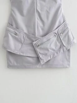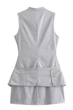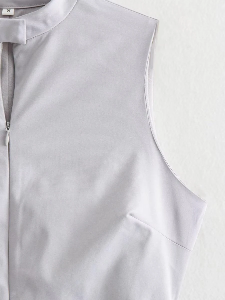 Sexy non-stretch solid color slim zip-up sleeveless mini dress size run small
