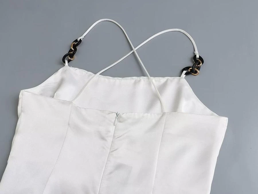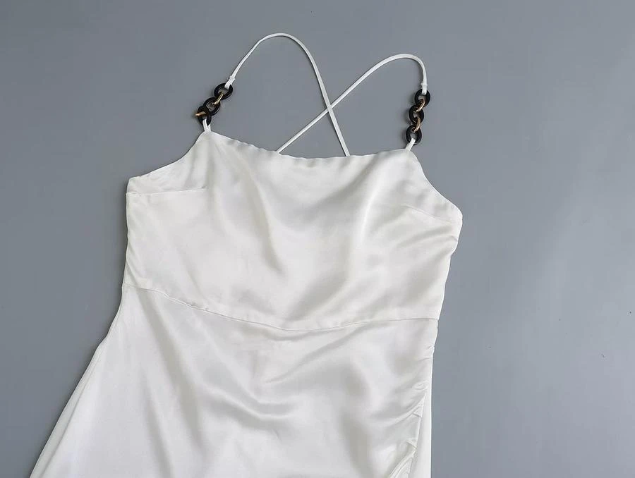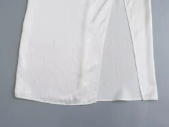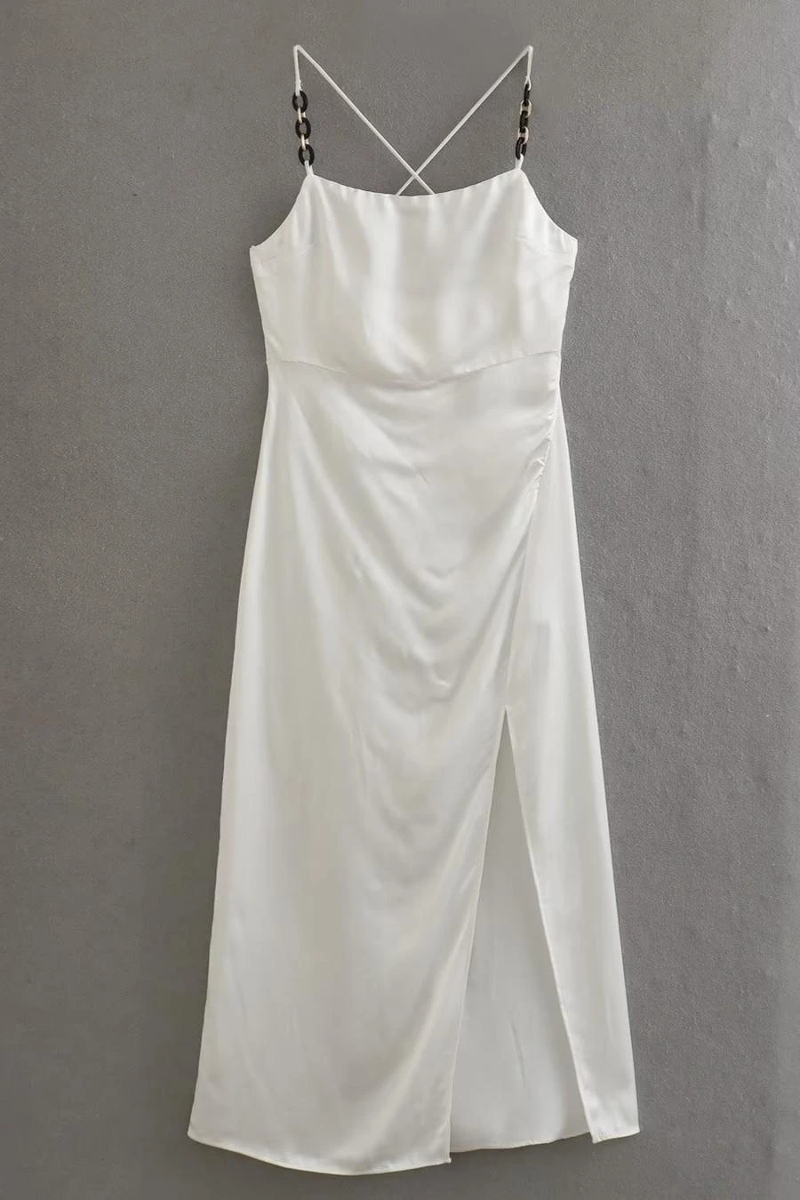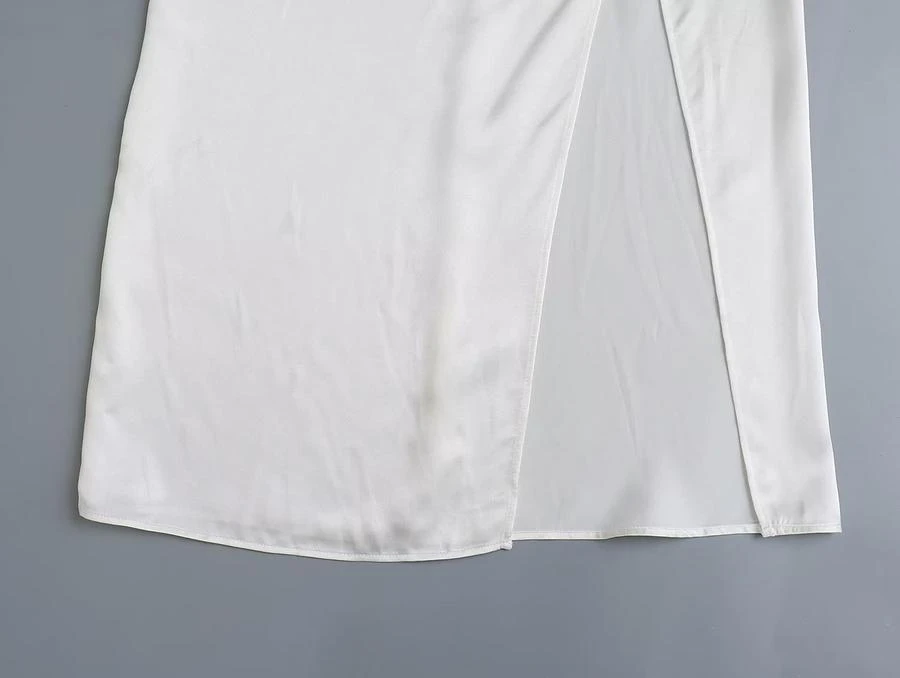Sexy non-stretch solid sling zip-up slit satin midi dress size run small