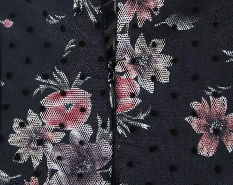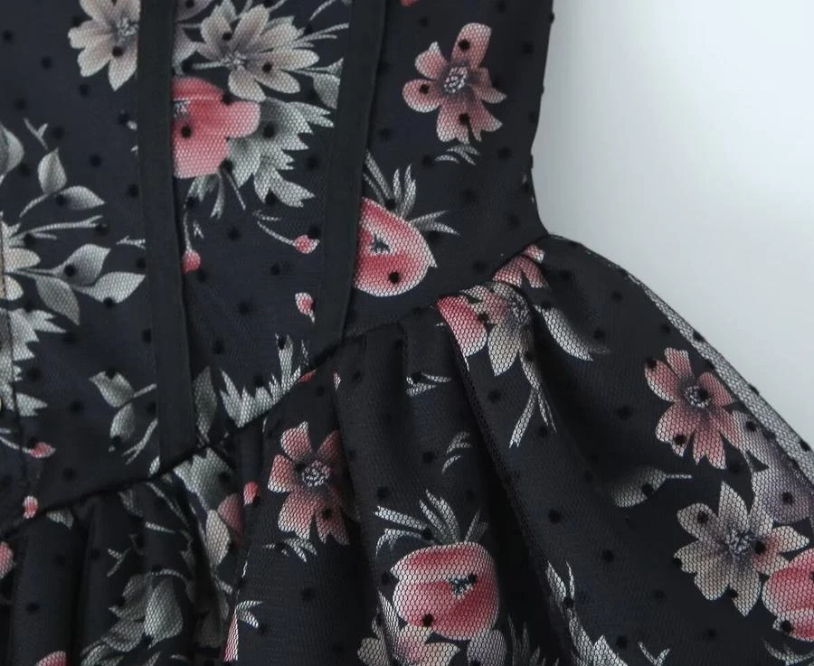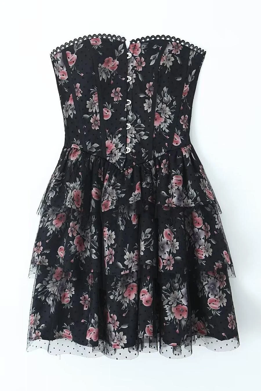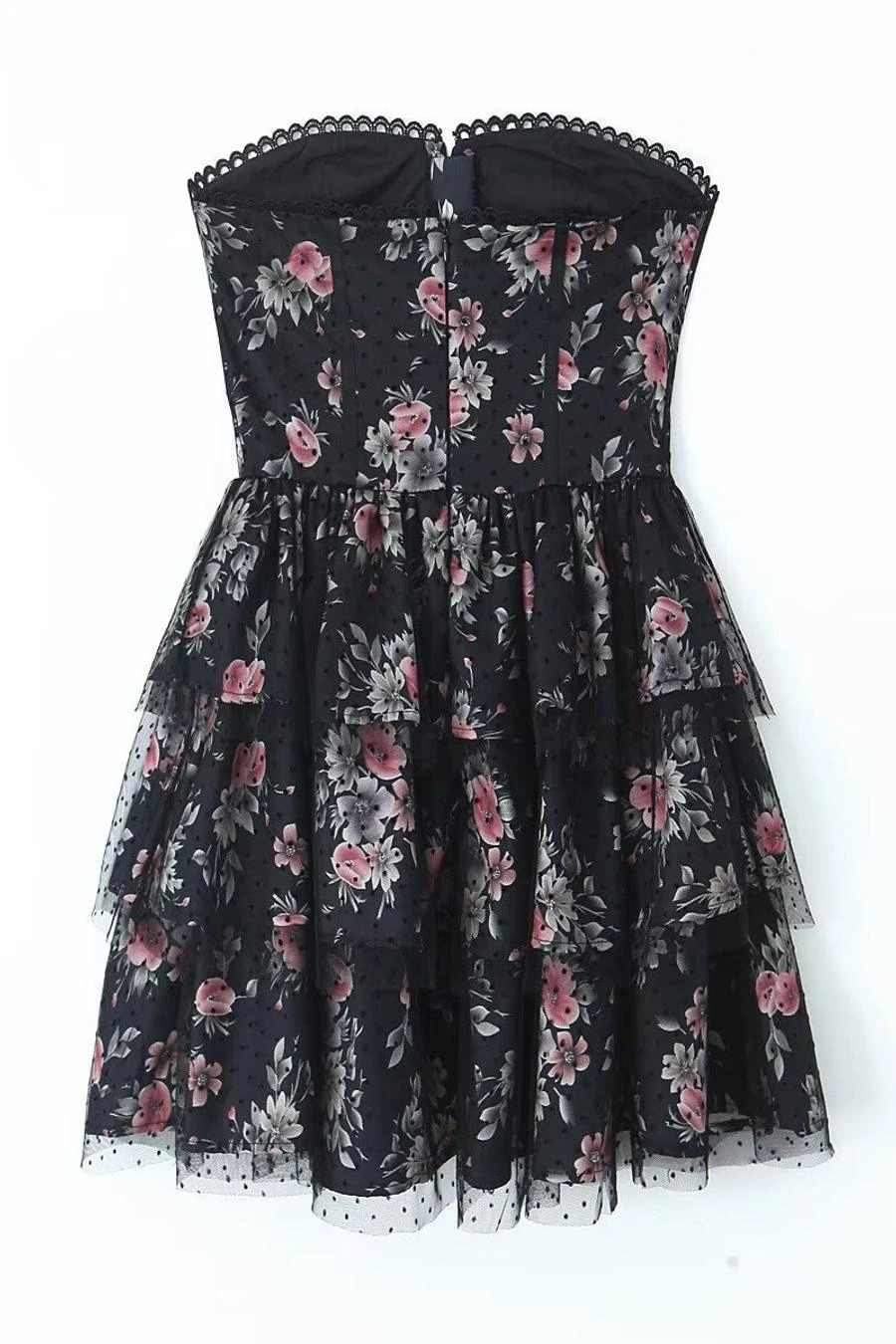 Sexy non-stretch strapless zip-up floral print mini dress sizeĀ runĀ small