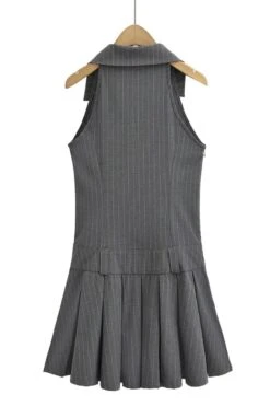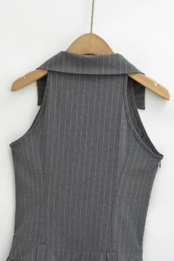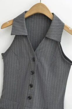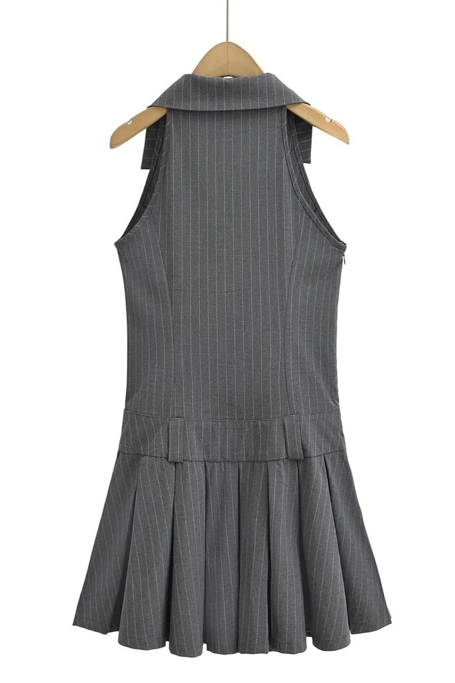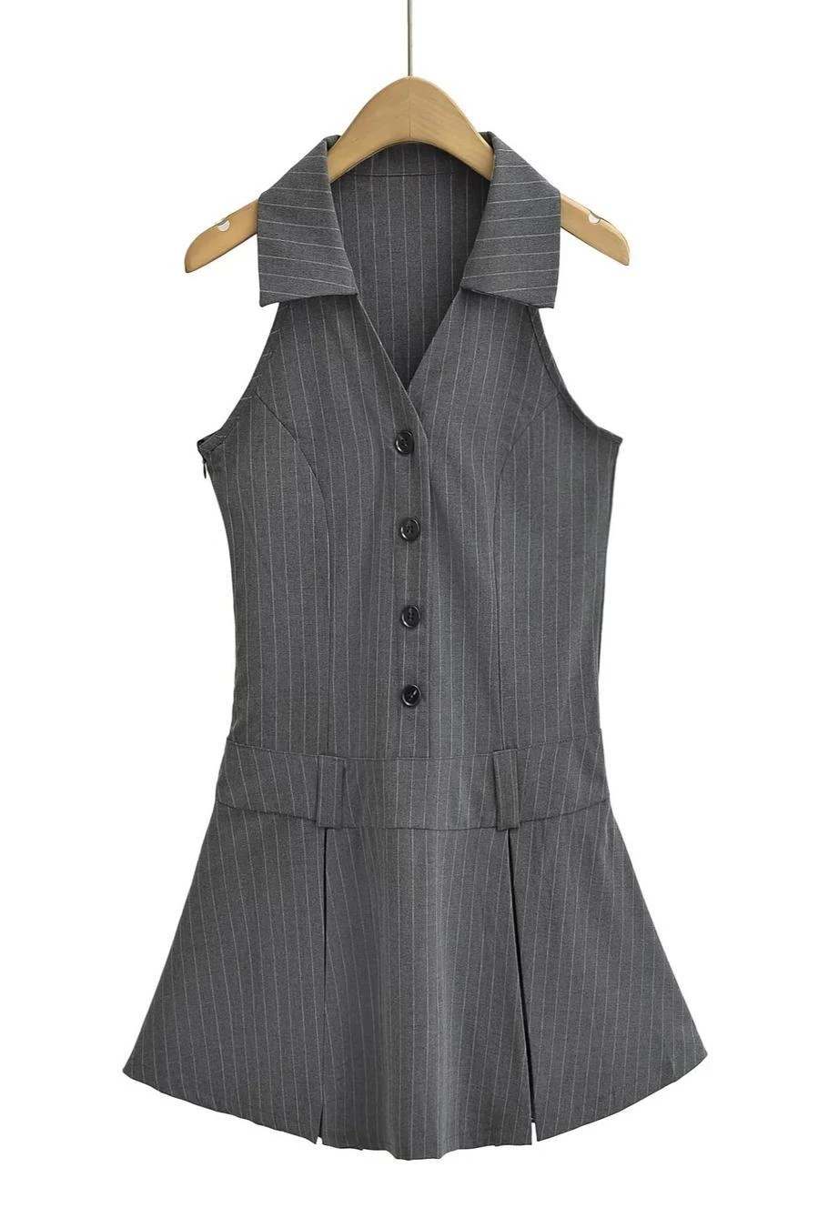 Sexy non-stretch streak single breasted zip-up mini dress no belt size run small