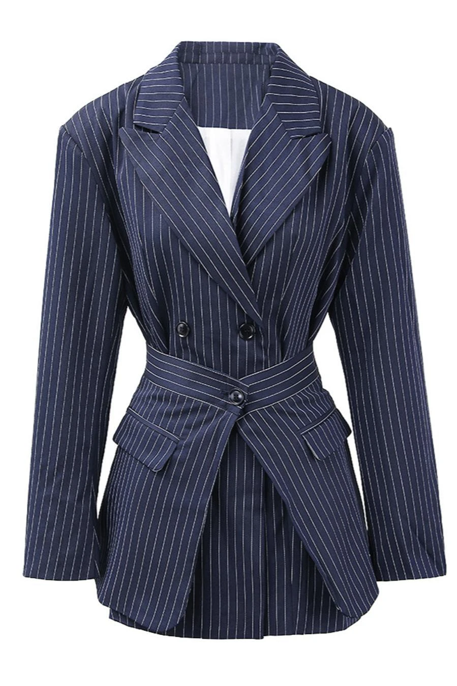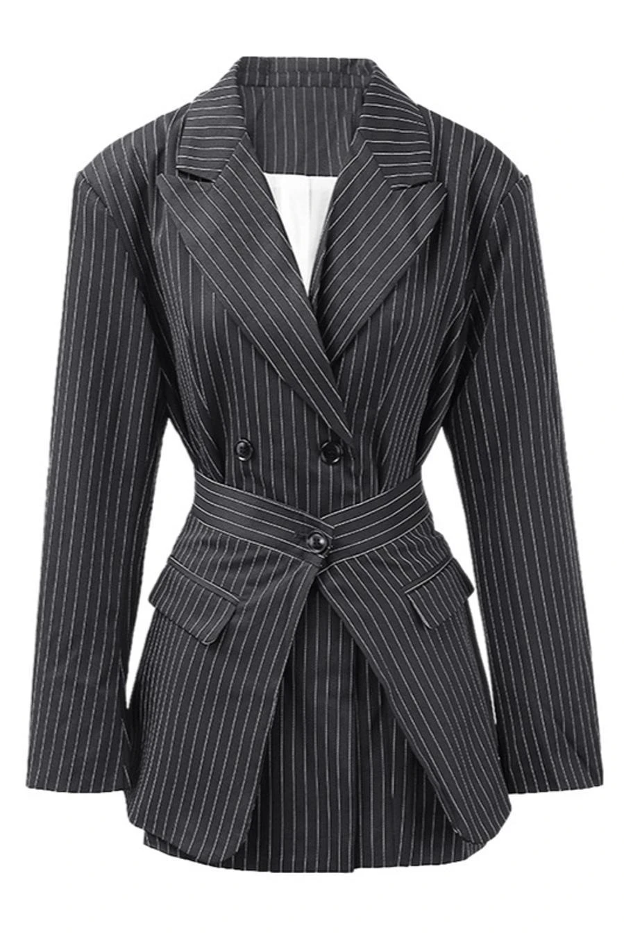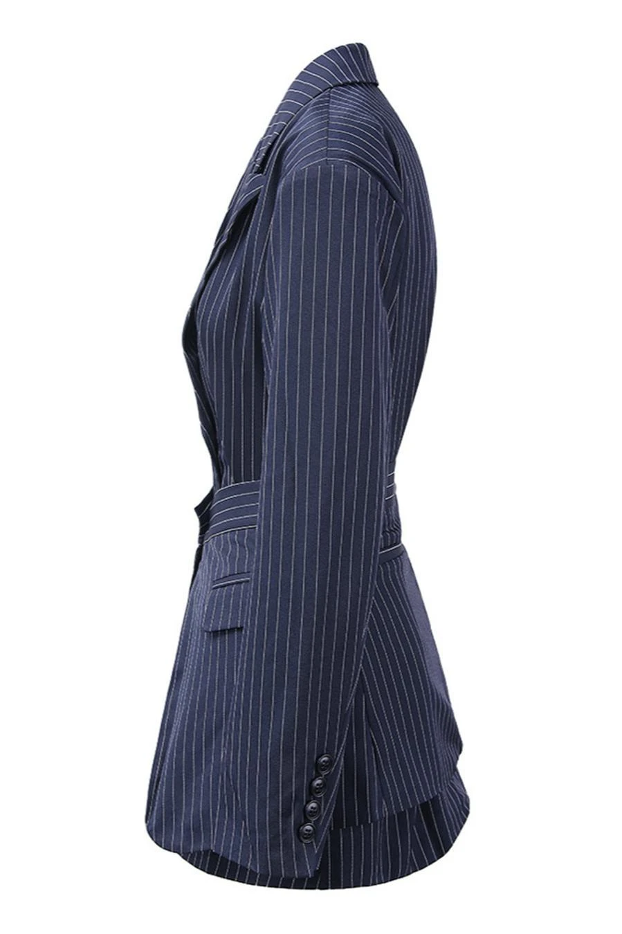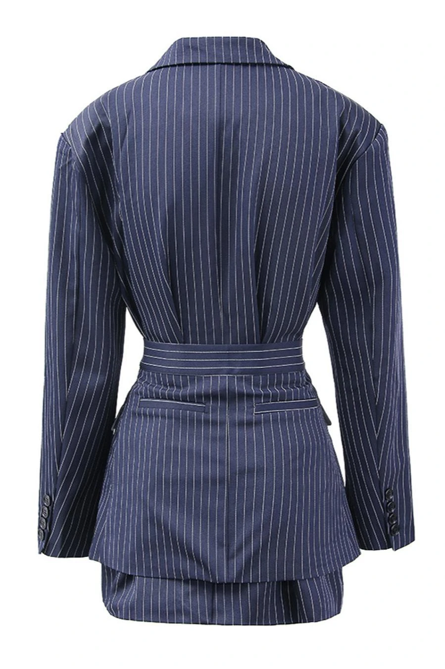 Sexy non-stretch stripe printing suit collar removable girdle mini dress size run small