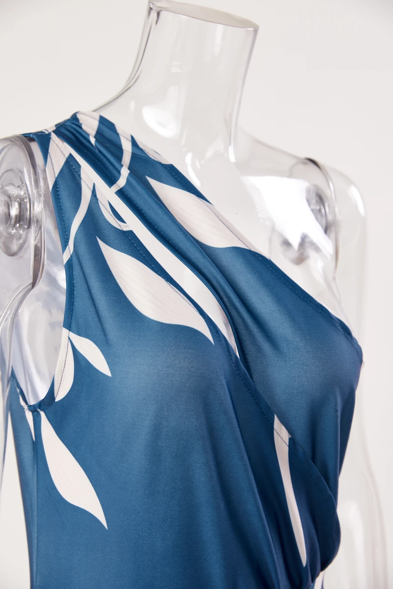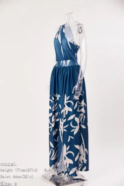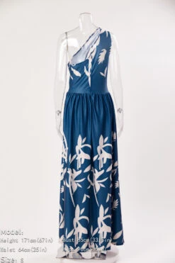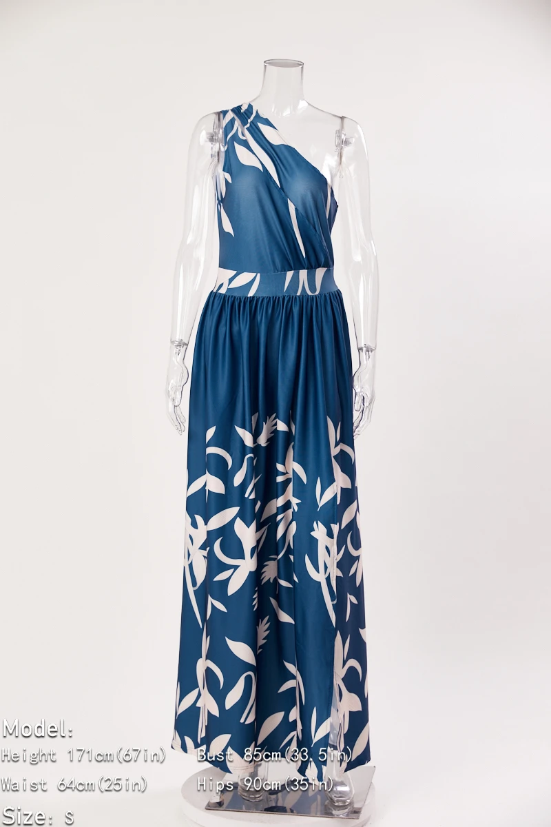 Sexy plus size floral print non-stretch hollow one shoulder slit maxi dress size run small#1 (AA011589)