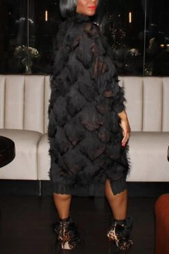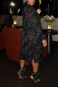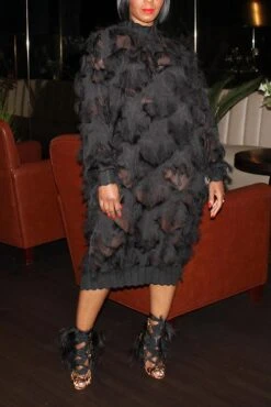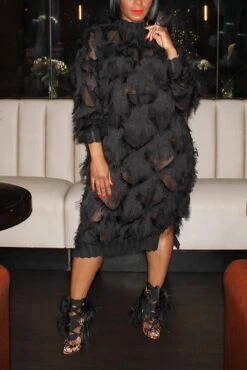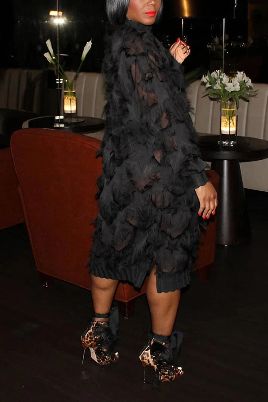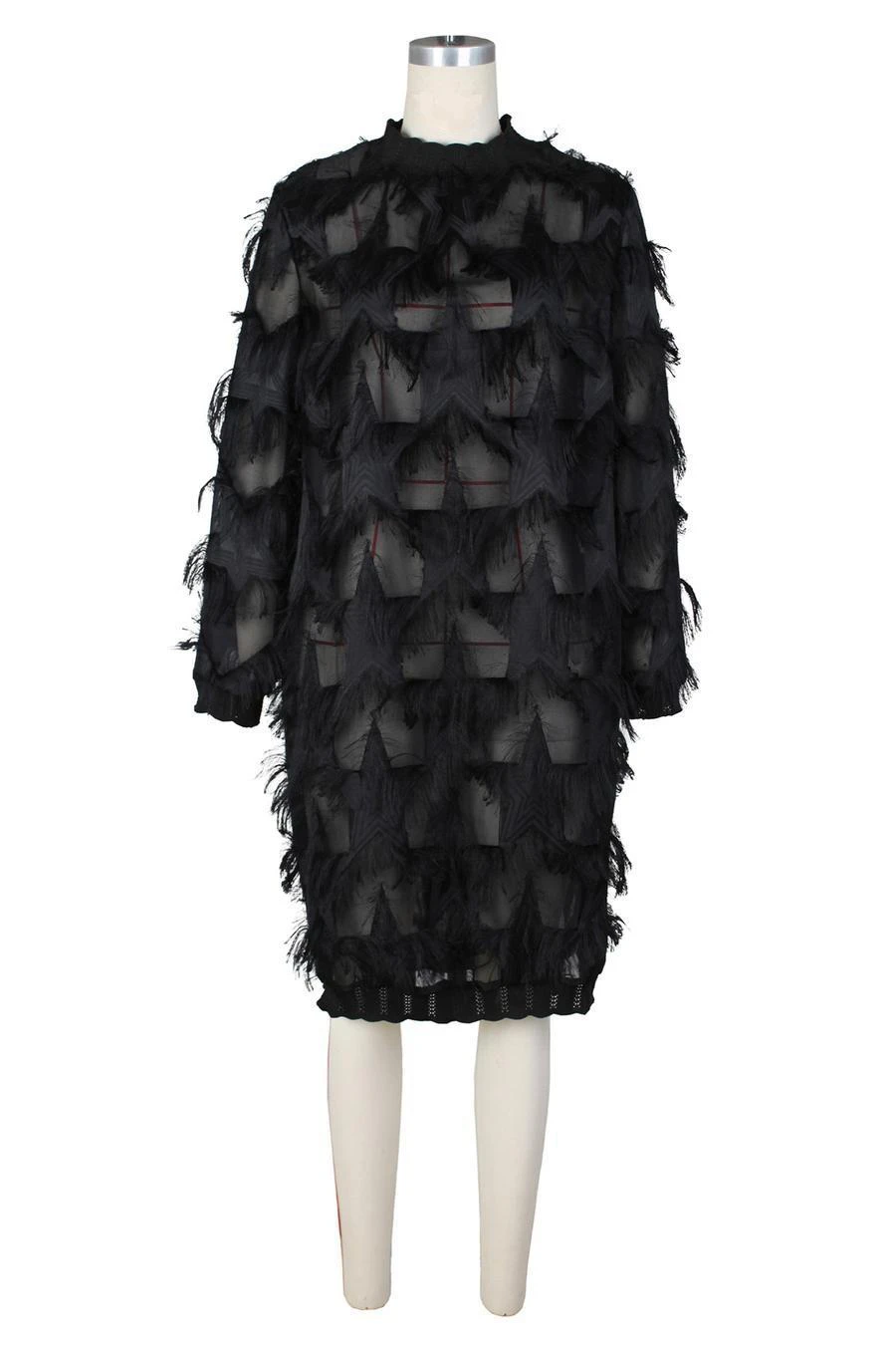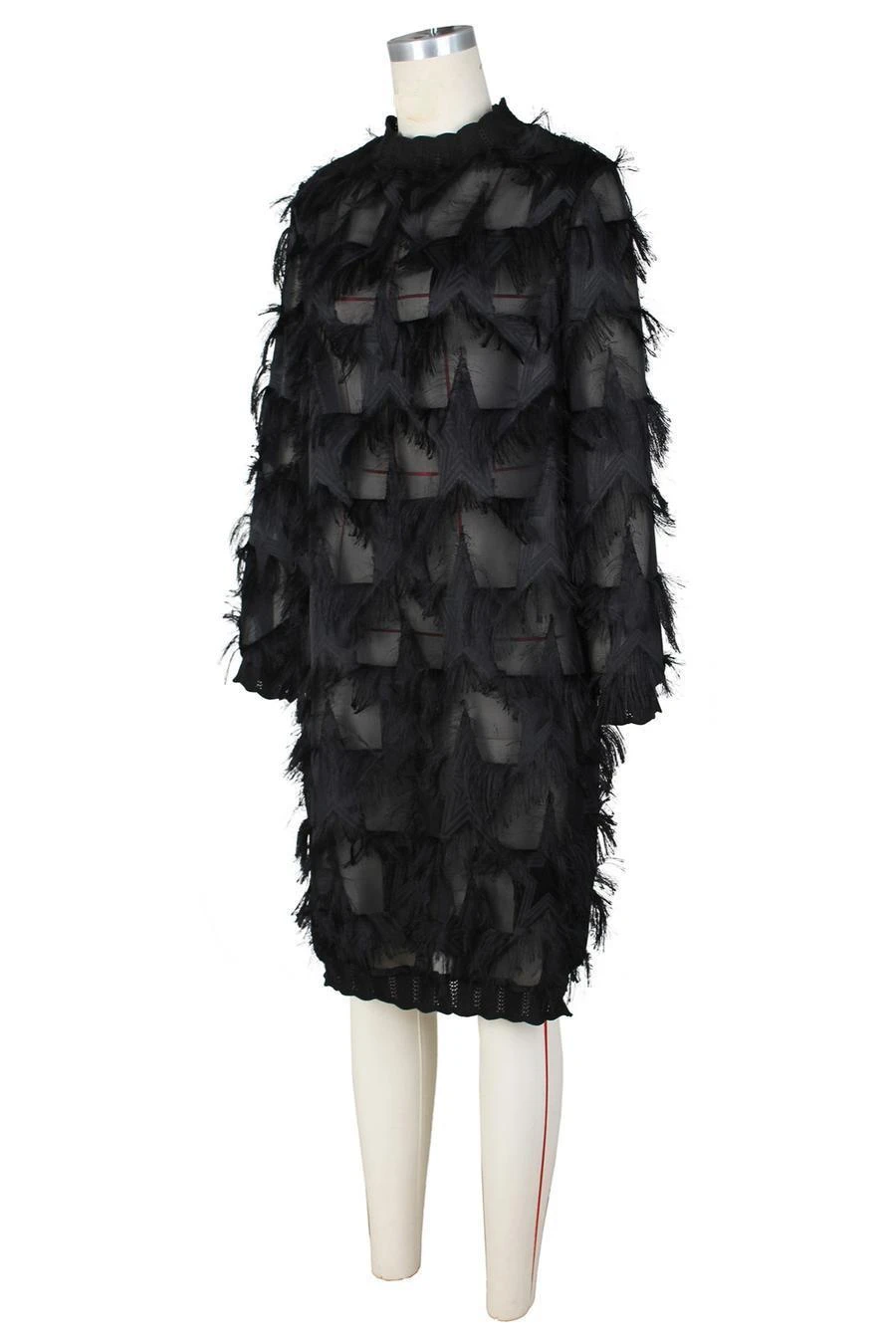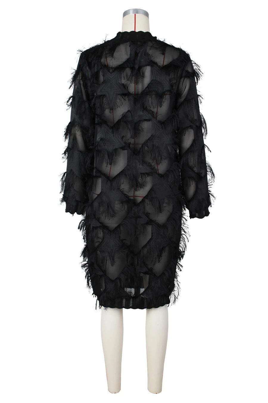 Sexy plus size non-stretch chiffon see through tassel decor midi dress