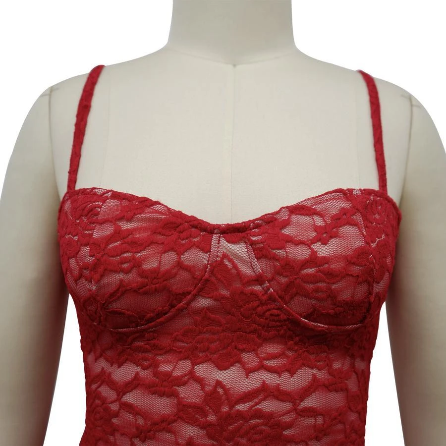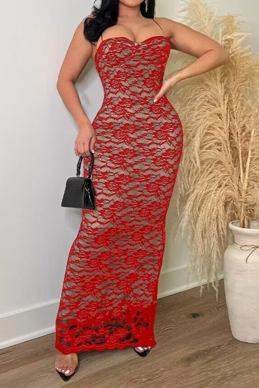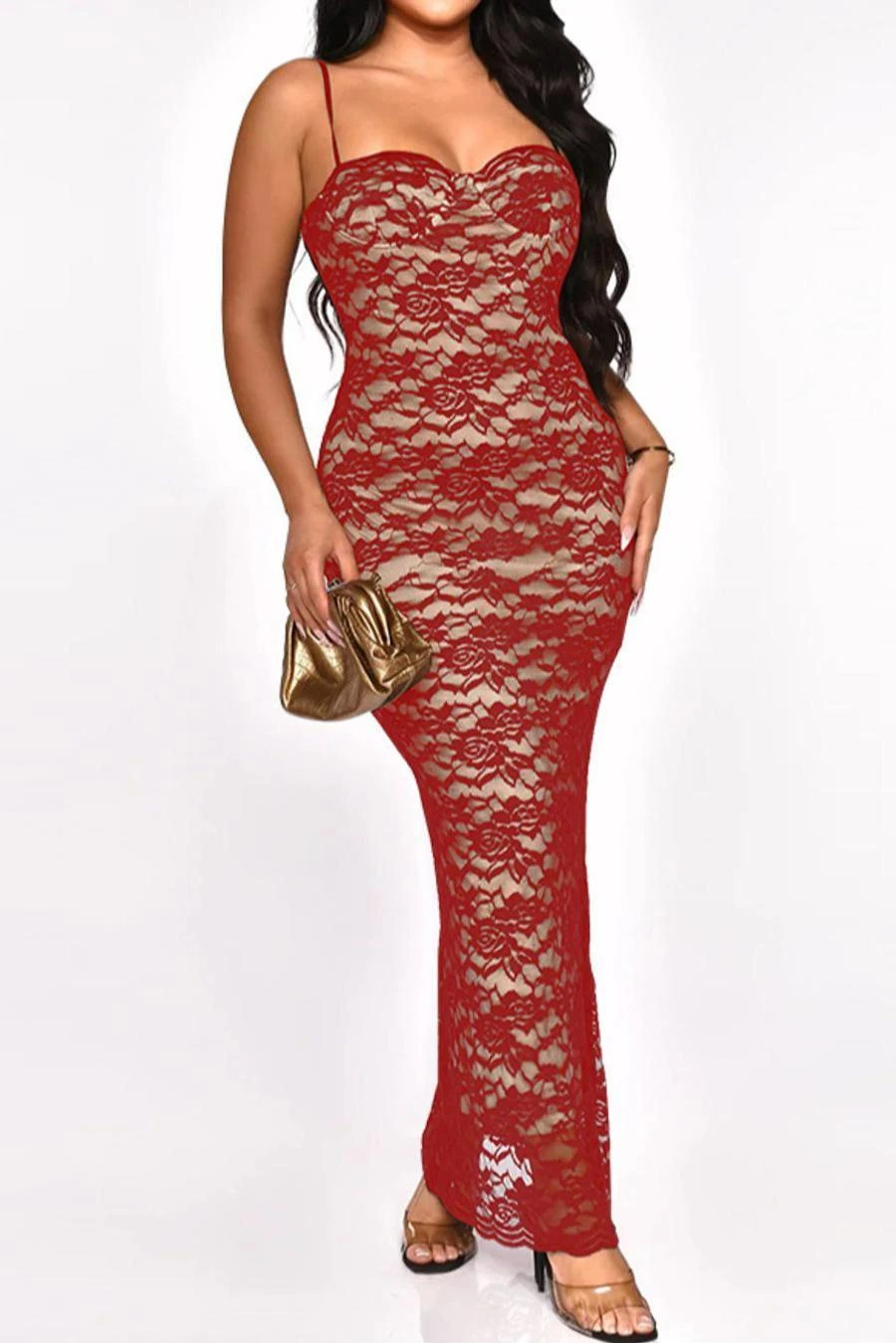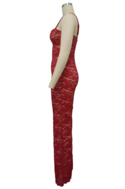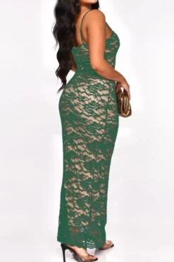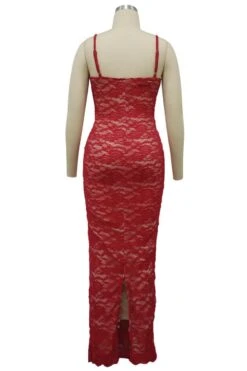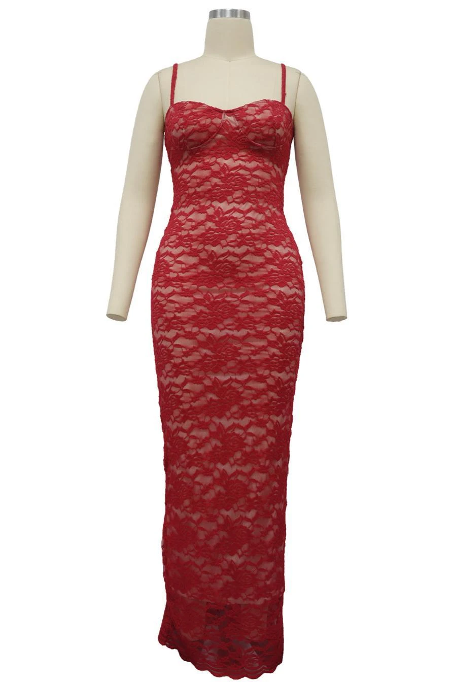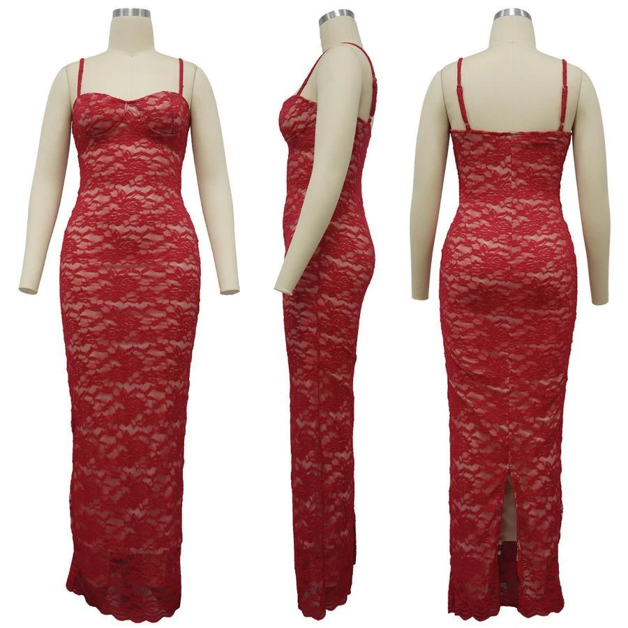 Sexy plus size non-stretch lace sling slit maxi dress#1