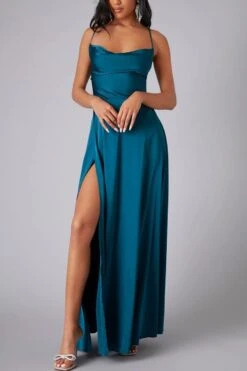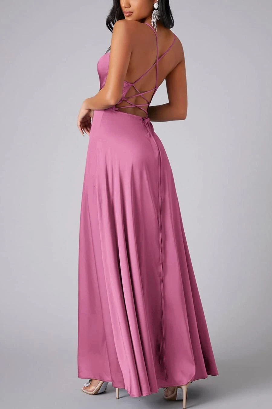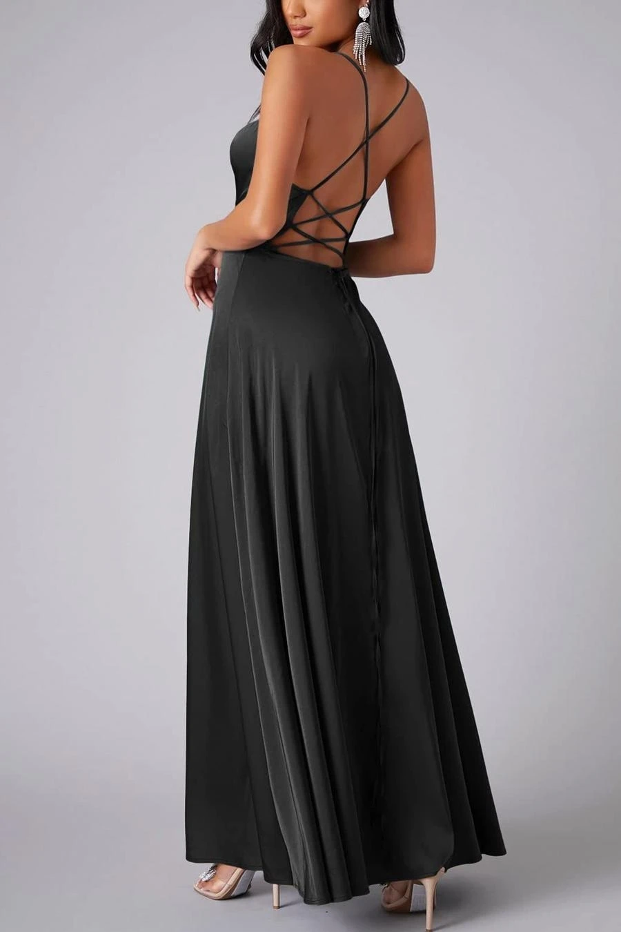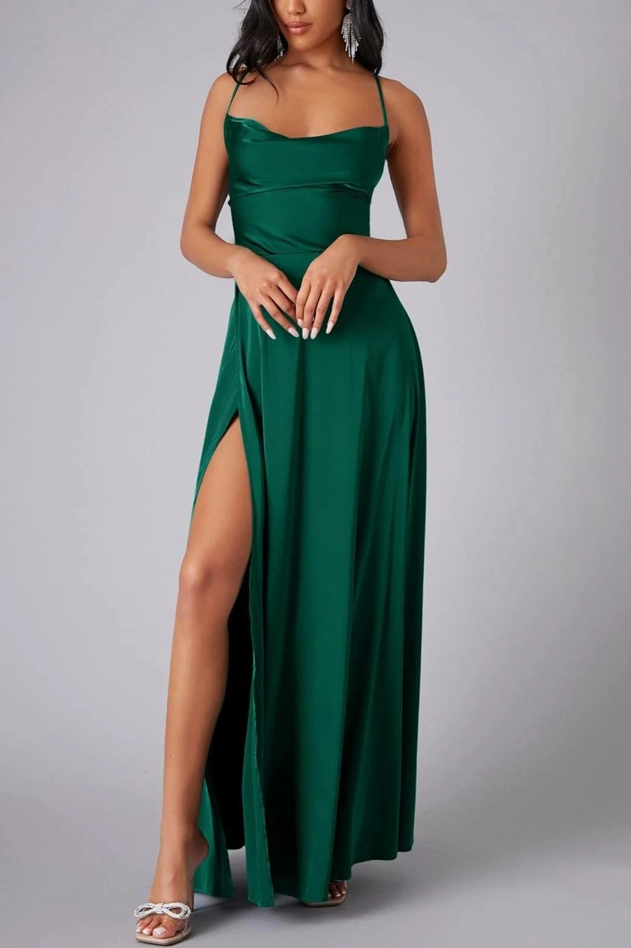 Sexy plus size non-stretch satin 8 colors sling slit maxi dress