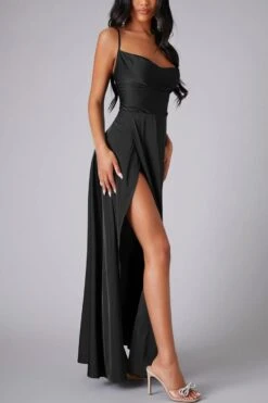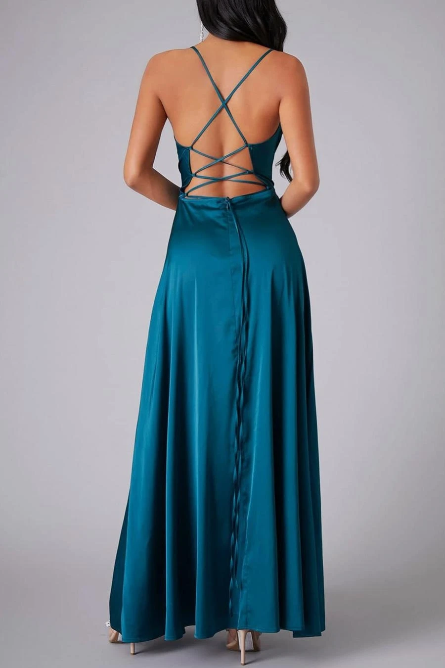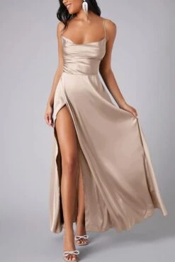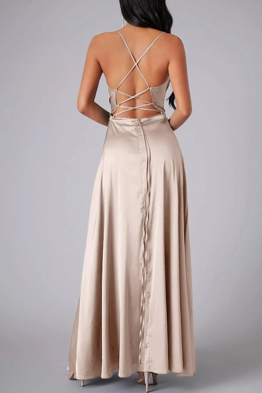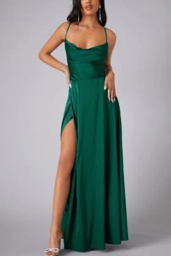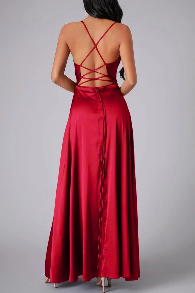 Sexy plus size non-stretch satin 8 colors sling slit maxi dress
