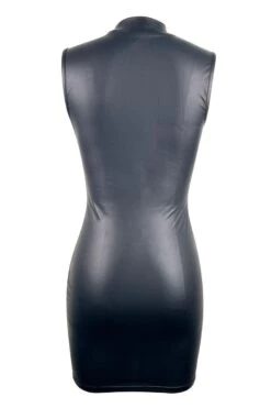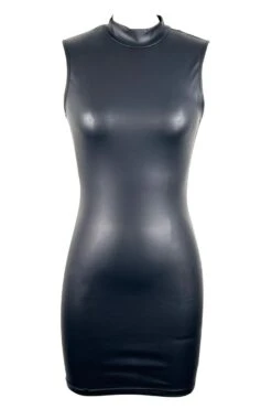 Sexy plus size non-stretch solid color leather tight sleeveless mini dress