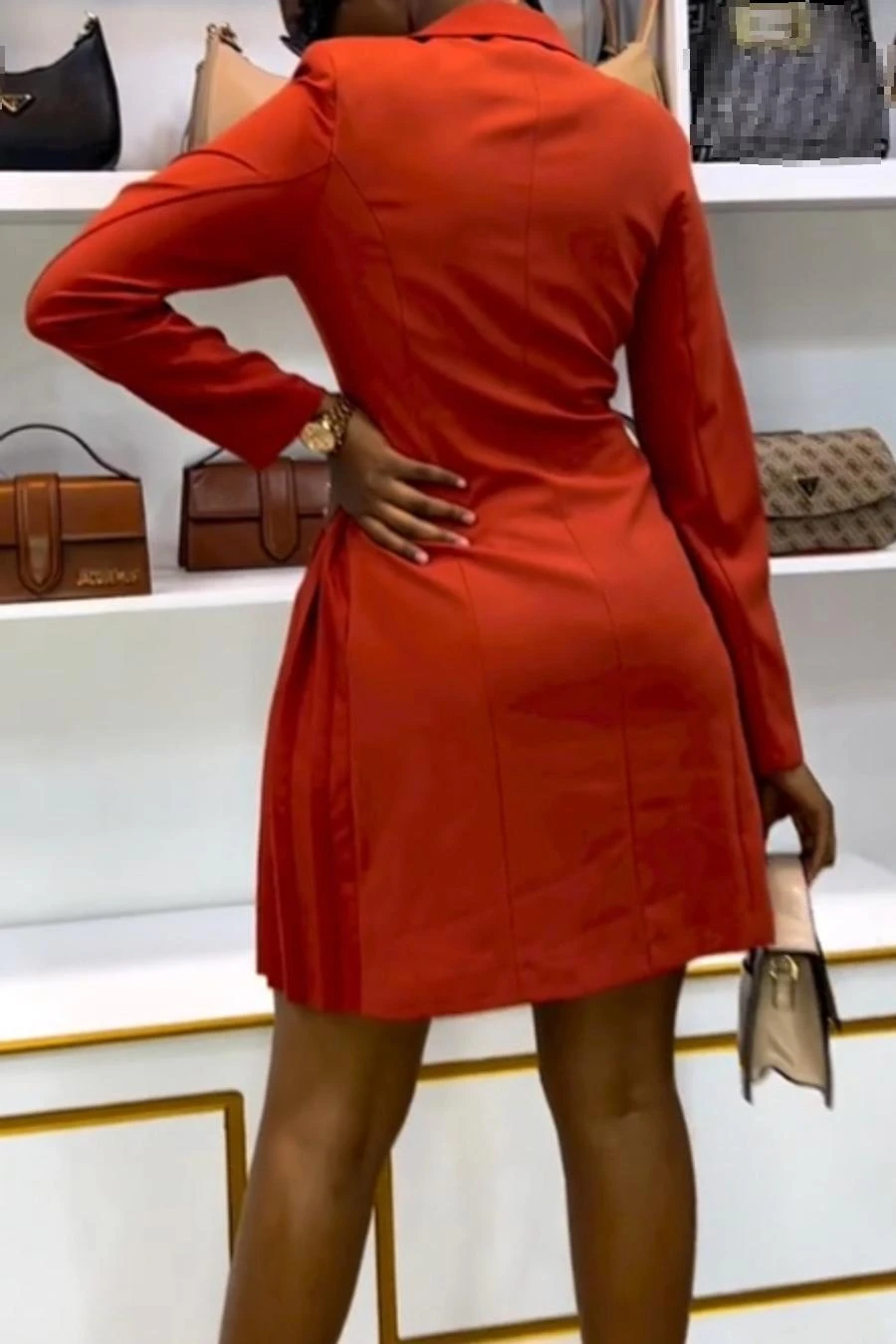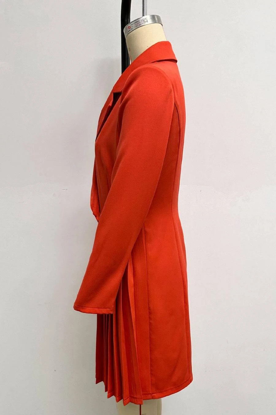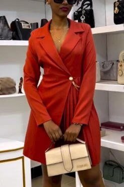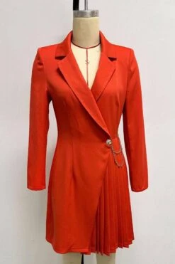 Sexy plus size non-stretch solid color suit collar pleated mini dress