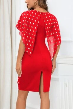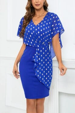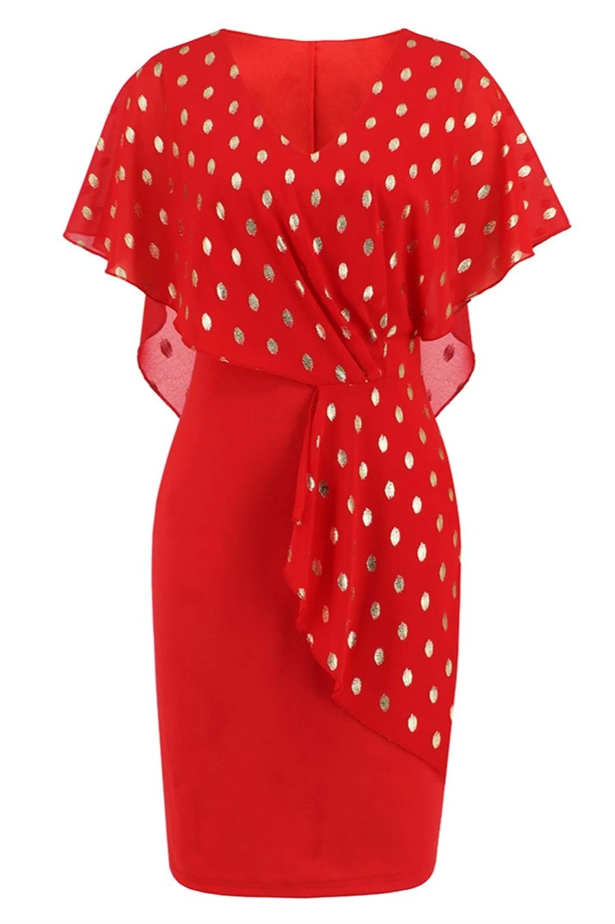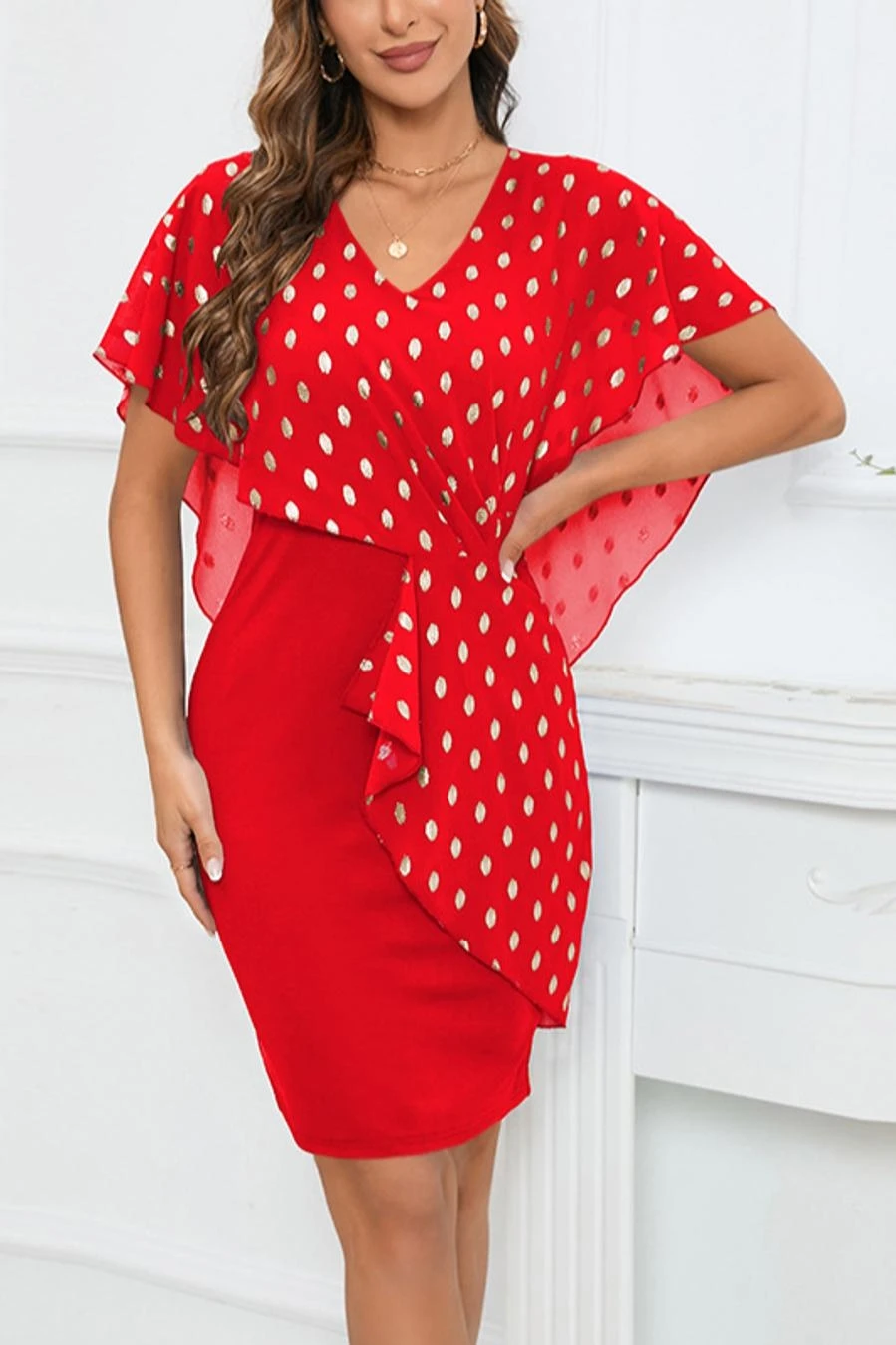Sexy plus size slight stretch 4 colors polka dot v-neck mini dress