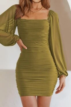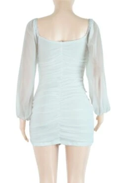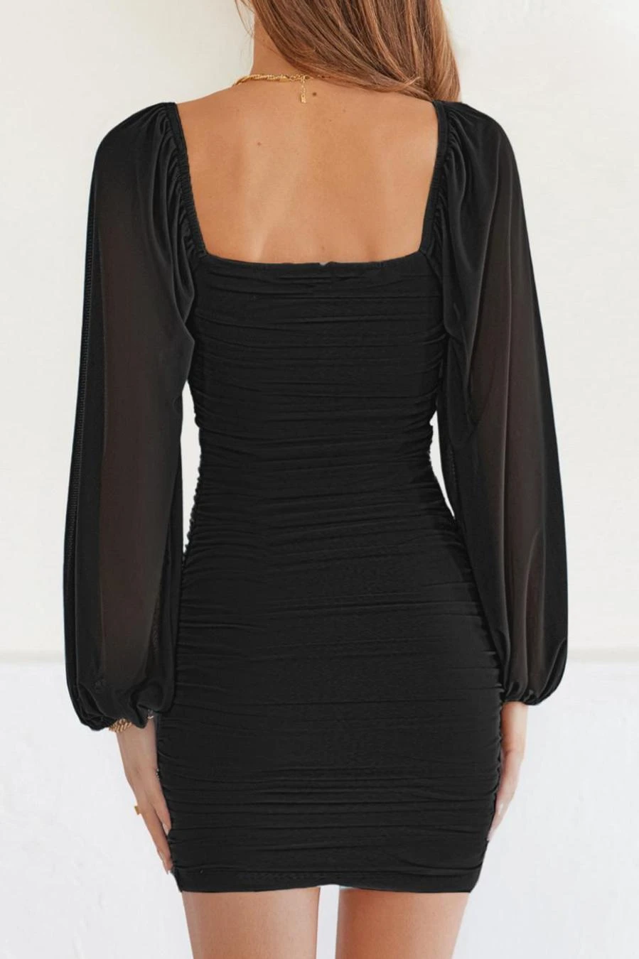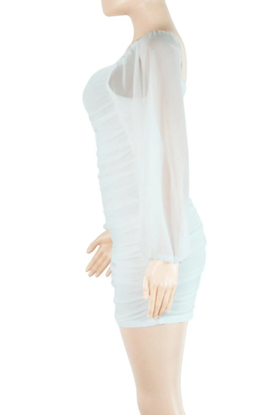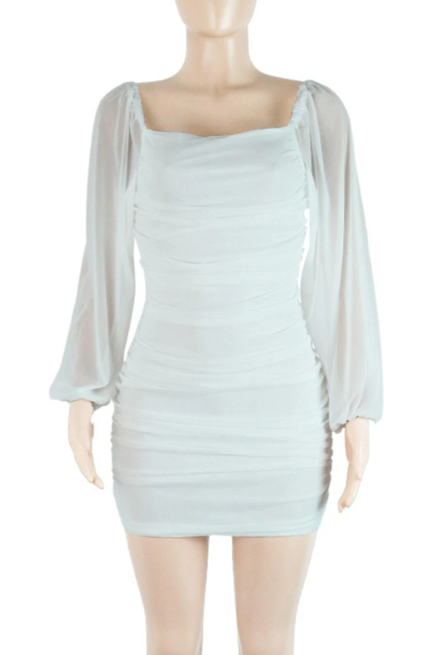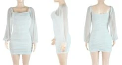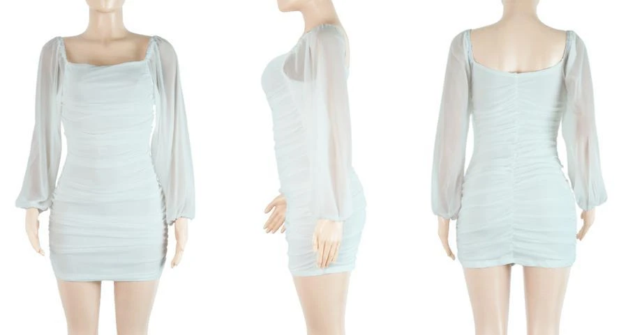 Sexy plus size slight stretch 5 colors square neck mesh mini dress