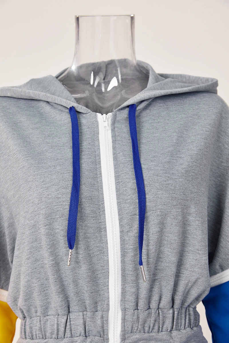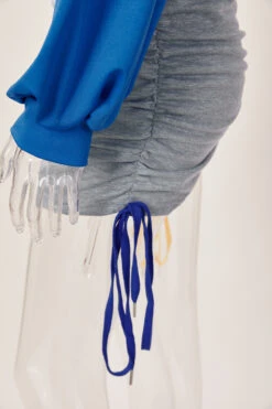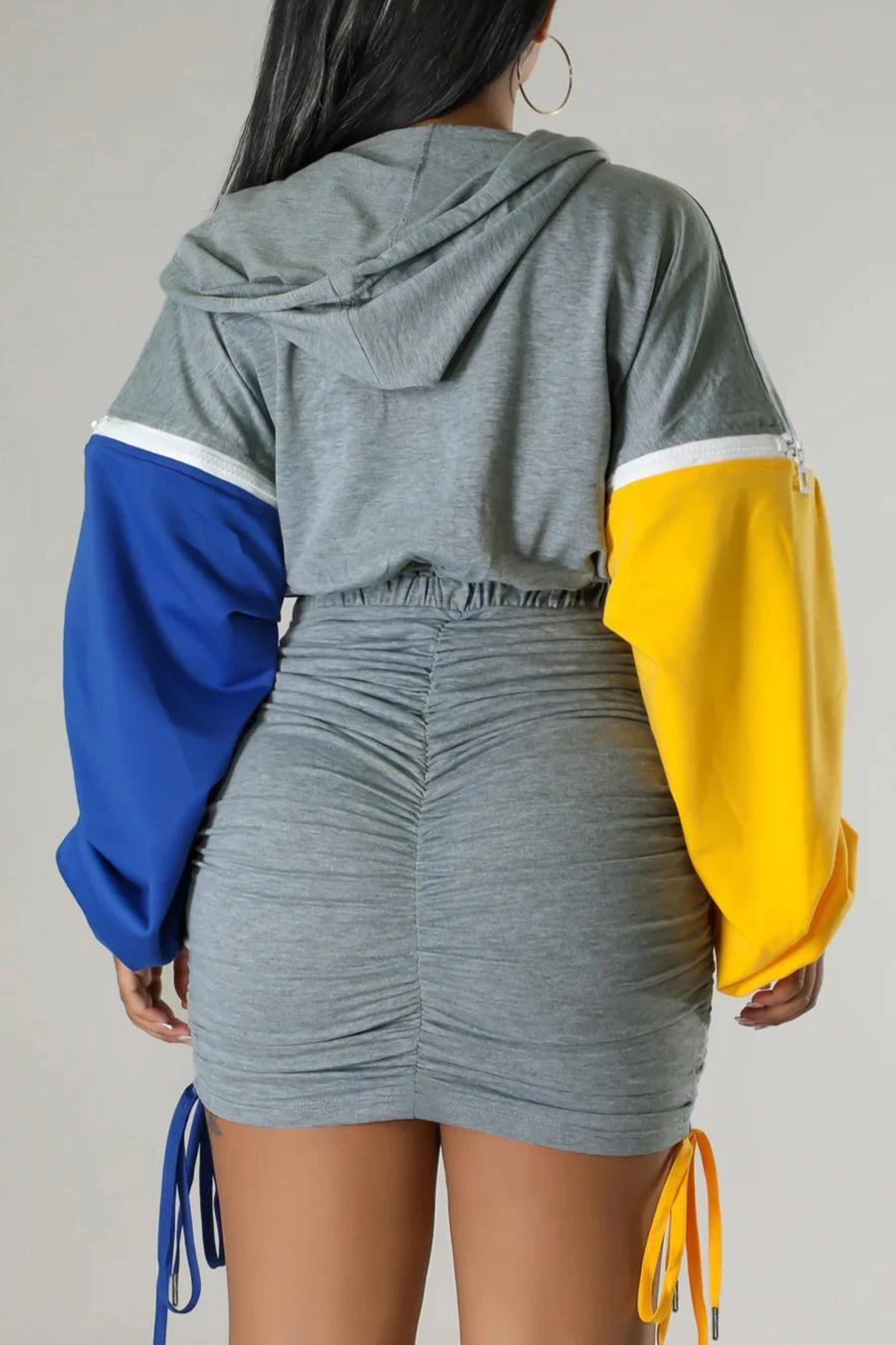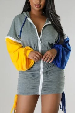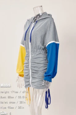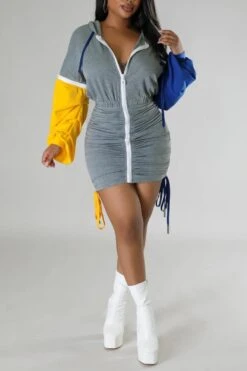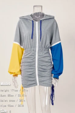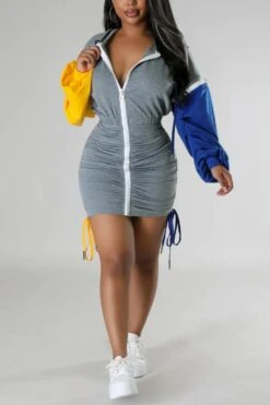 Sexy plus size slight stretch contrast color drawstring slim mini dress