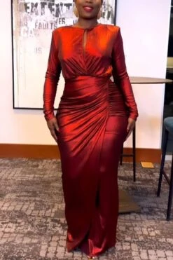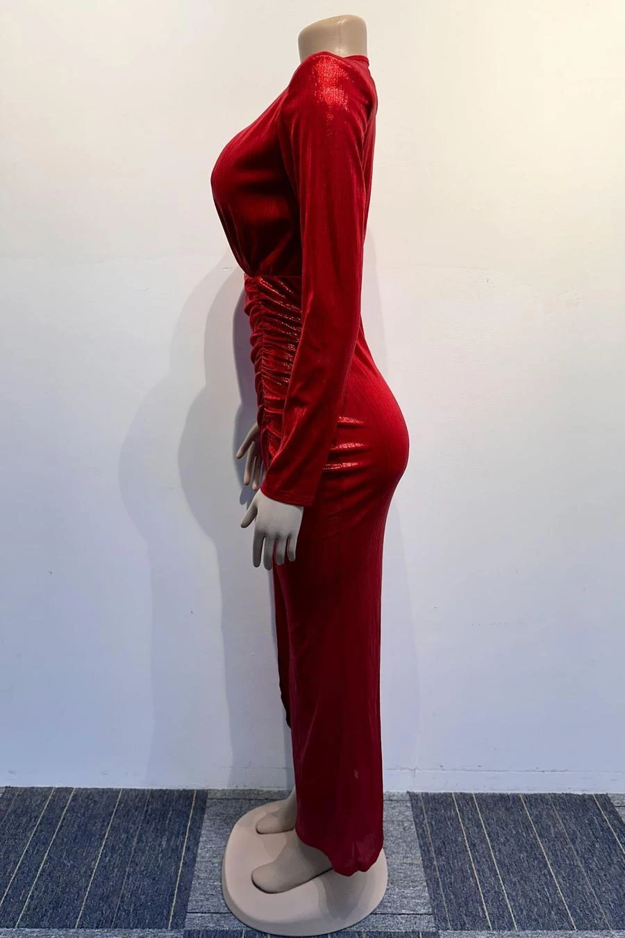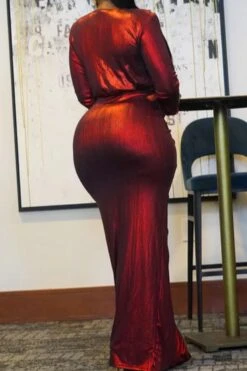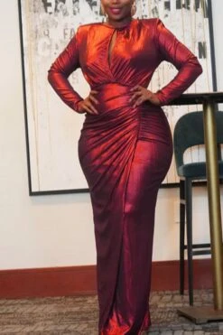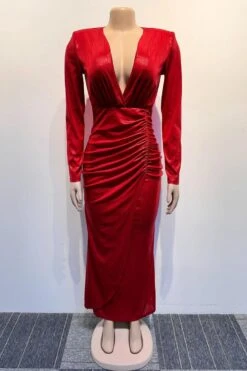 Sexy plus size slight stretch deep v-neck shirring maxi dress
