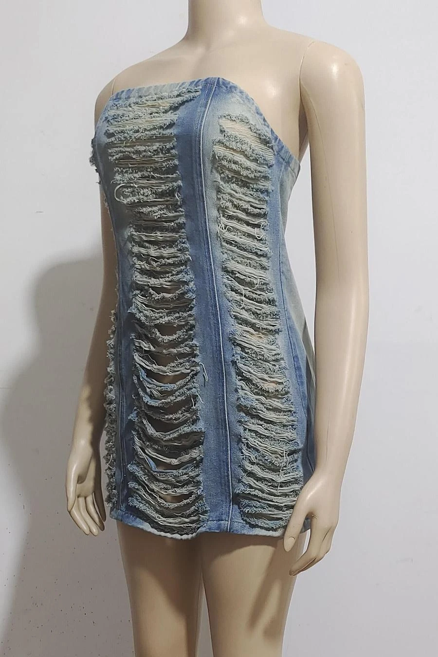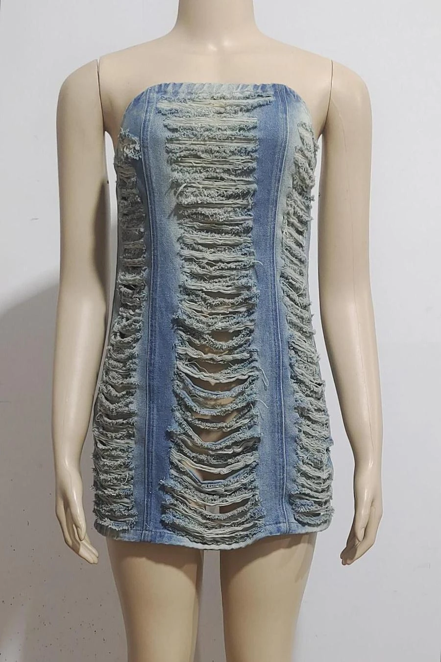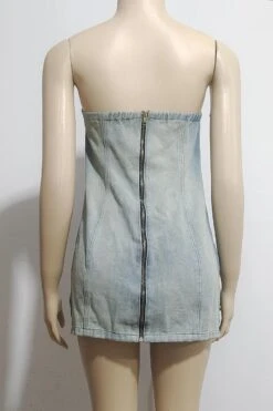 Sexy plus size slight stretch denim tube design hole zip-up slim mini dress