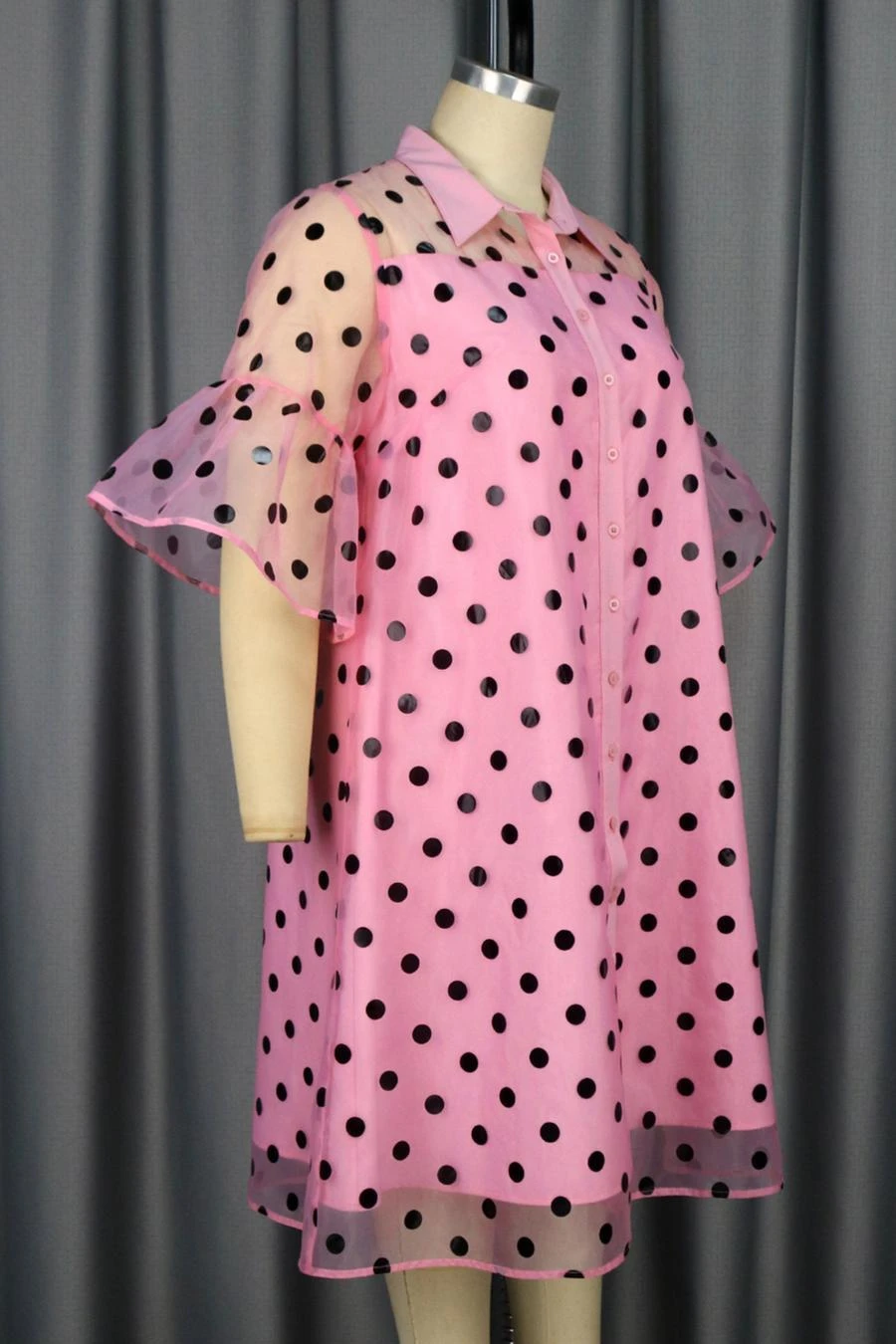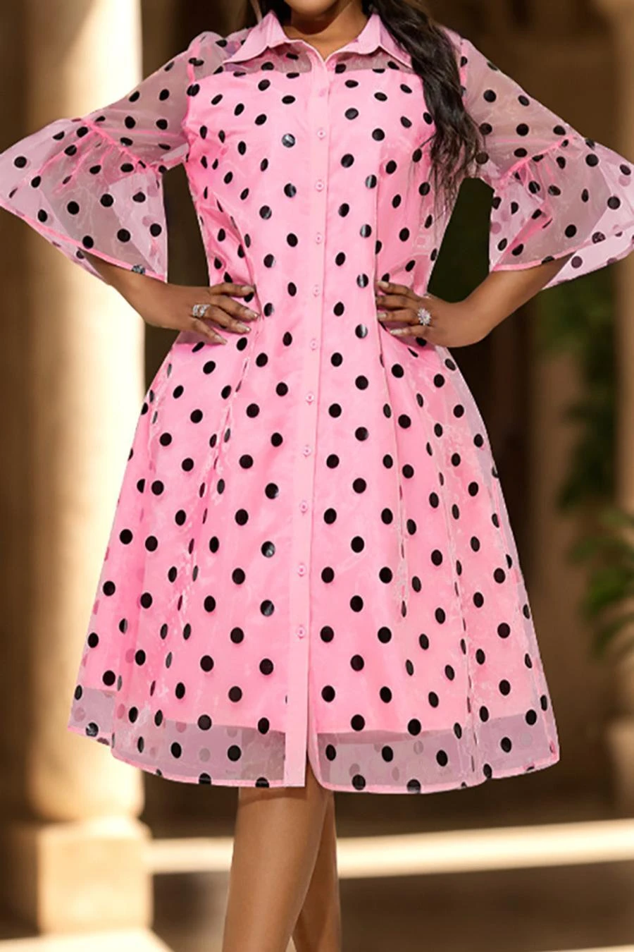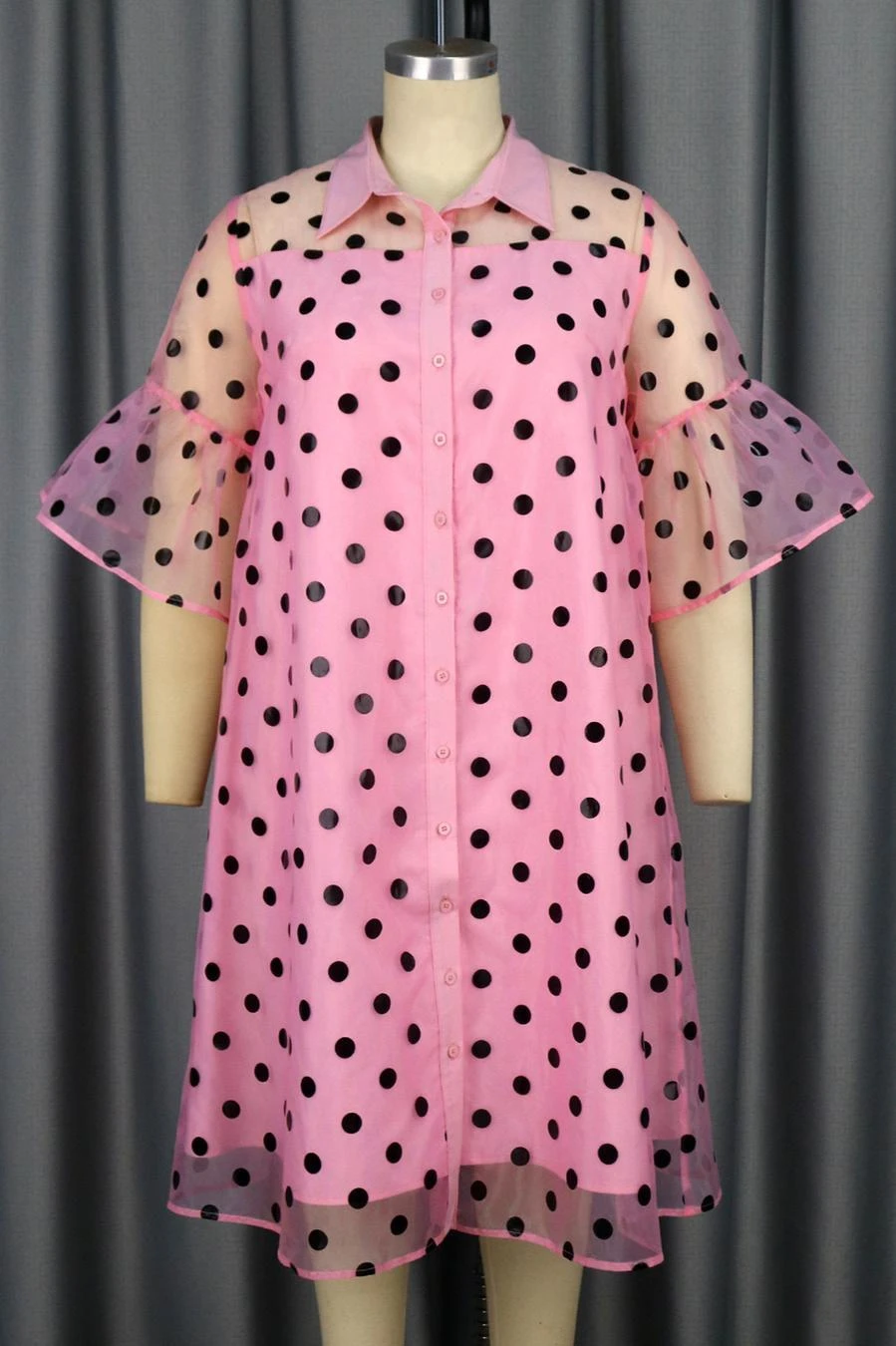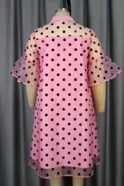 Sexy plus size slight stretch dot batch printing lapel midi dress