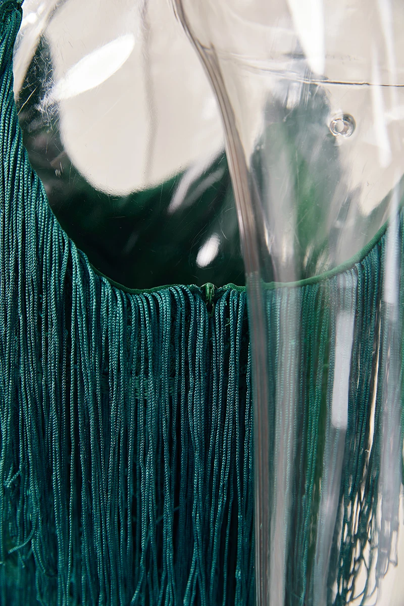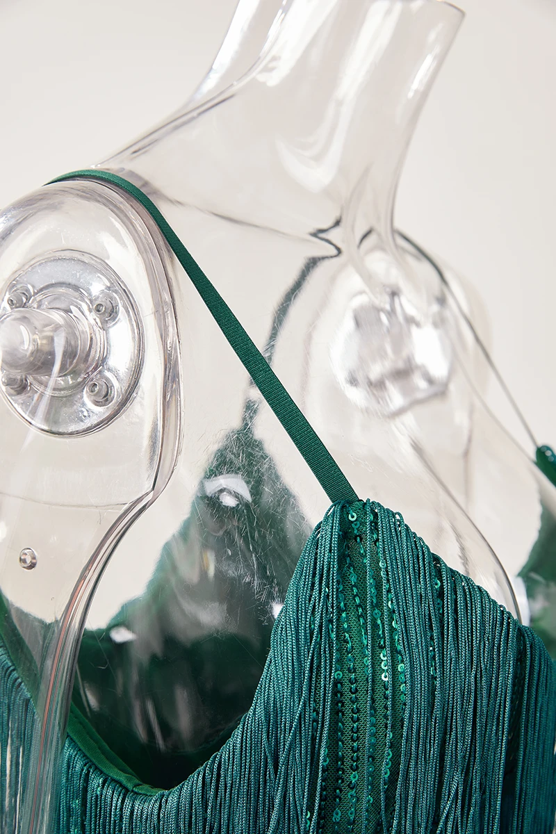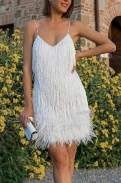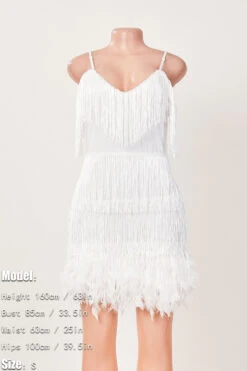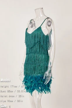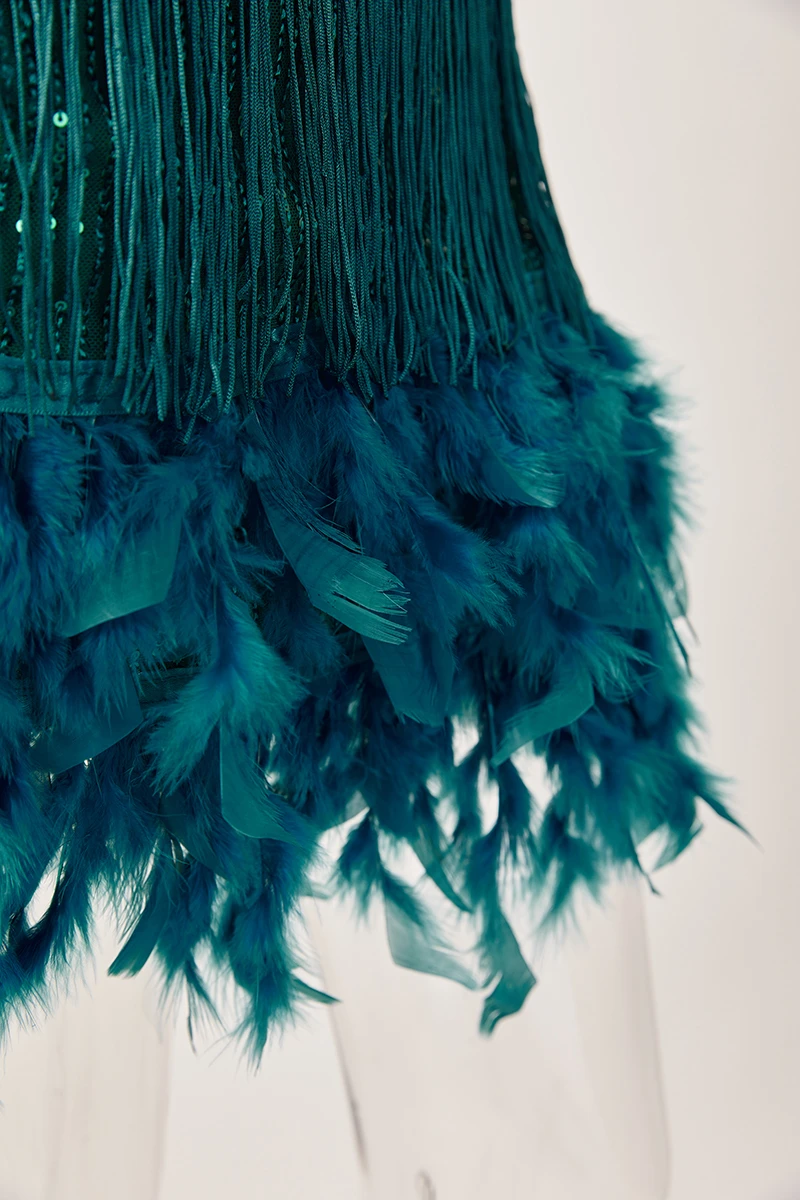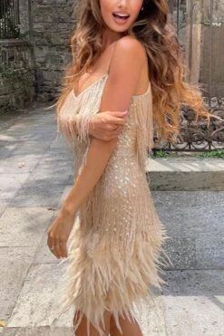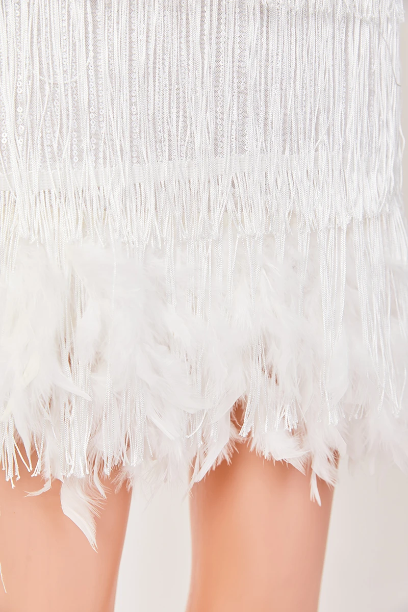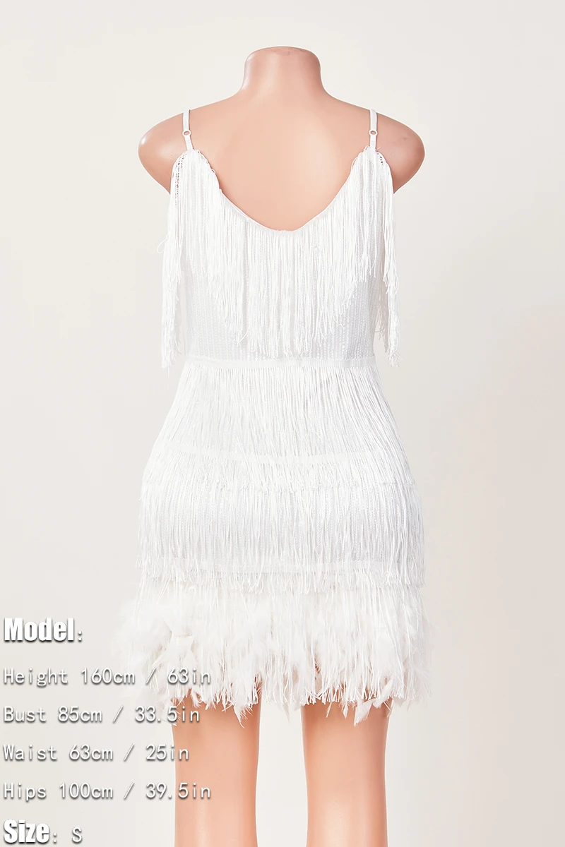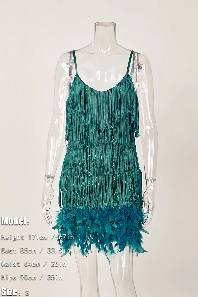 Sexy plus-size slight stretch feather sequins tassel mini dress