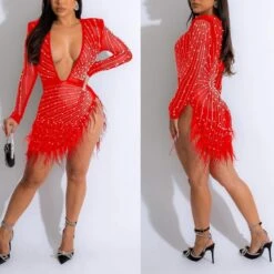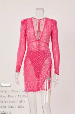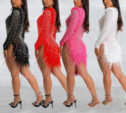 Sexy plus-size slight stretch fuzzy pearl slit slim mini dress(with panties)
