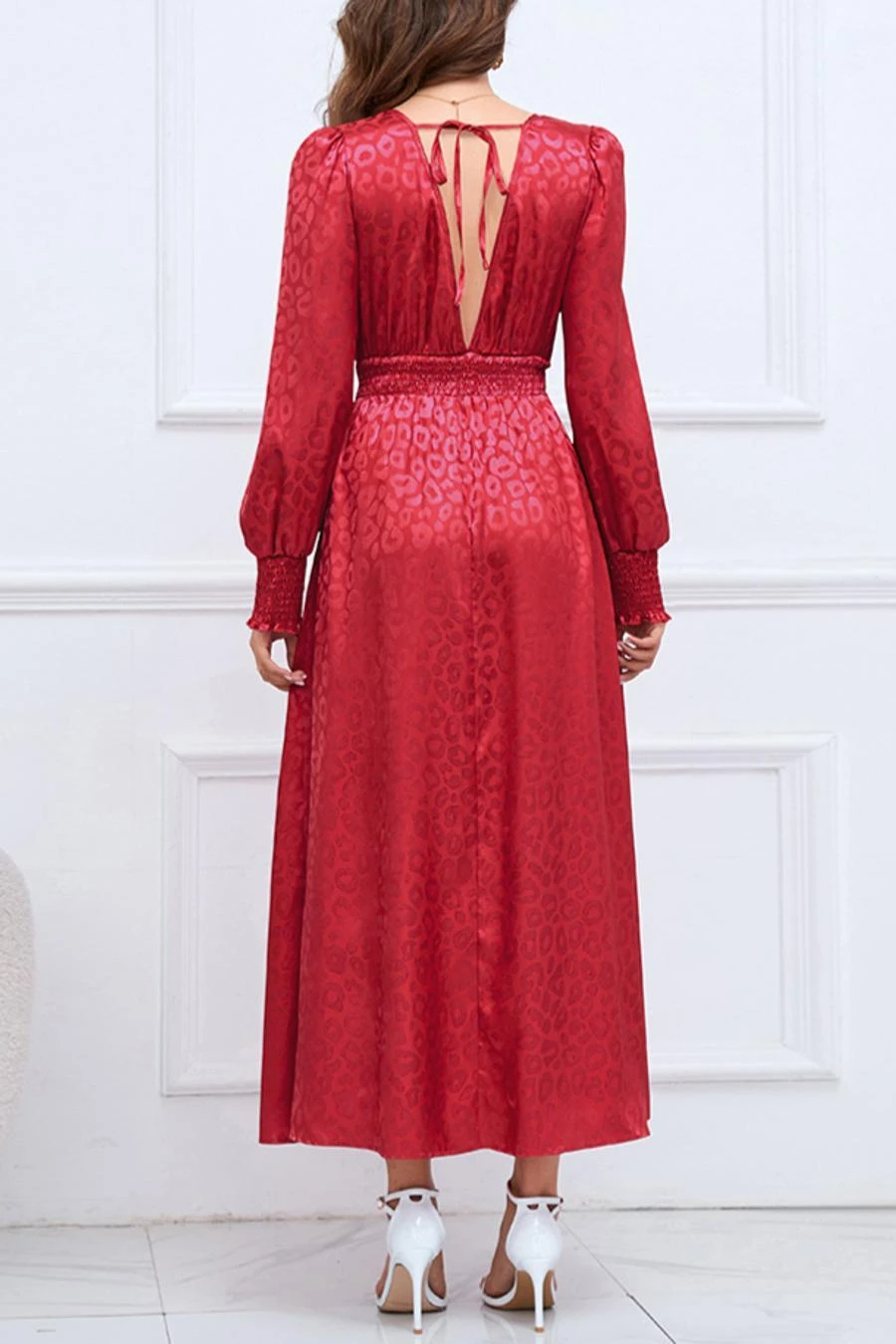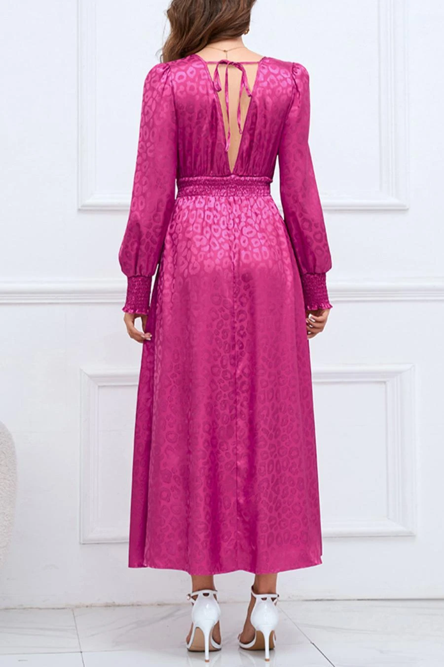 Sexy plus size slight stretch leopard v-neck backless lace-up maxi dress