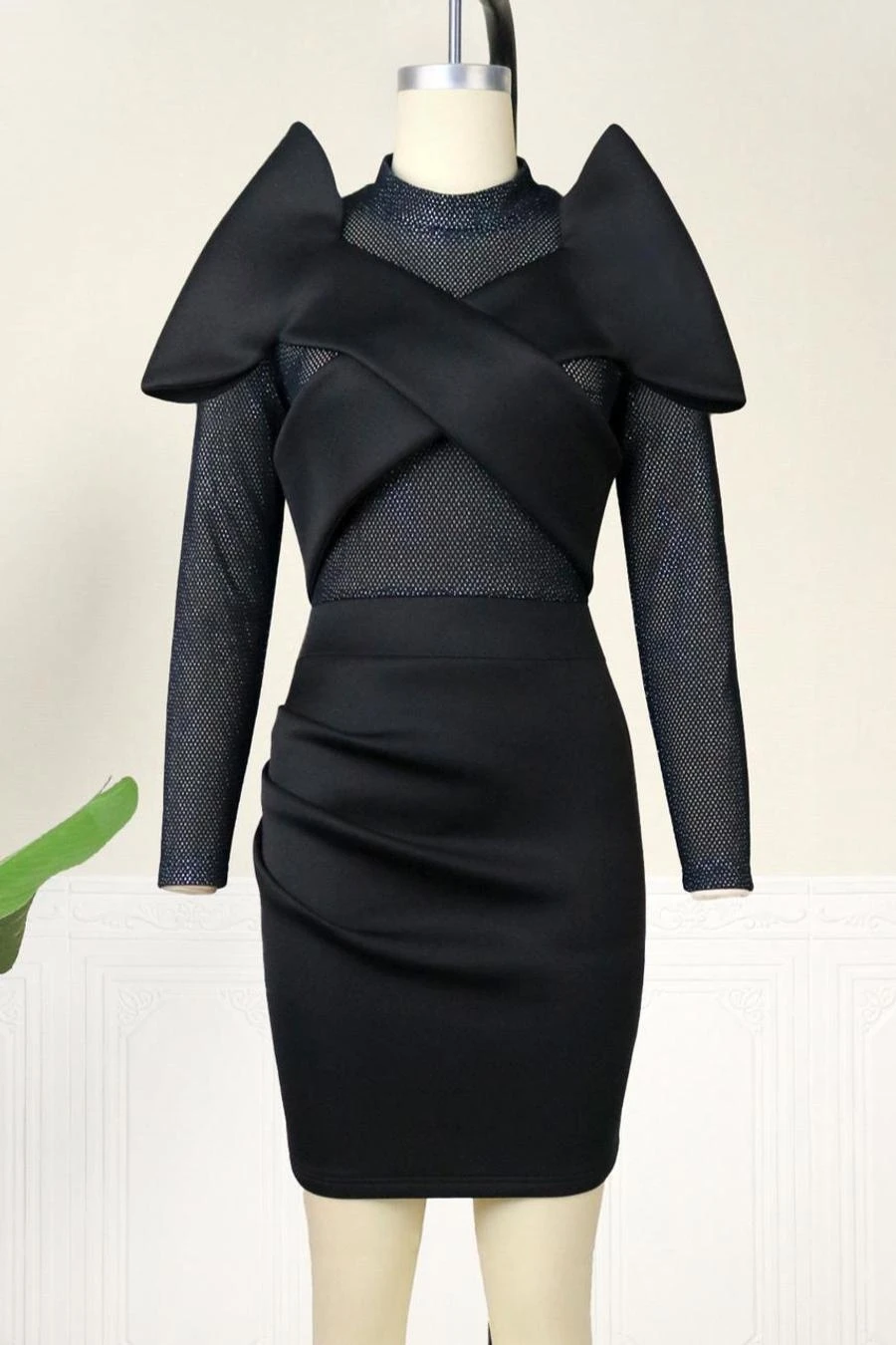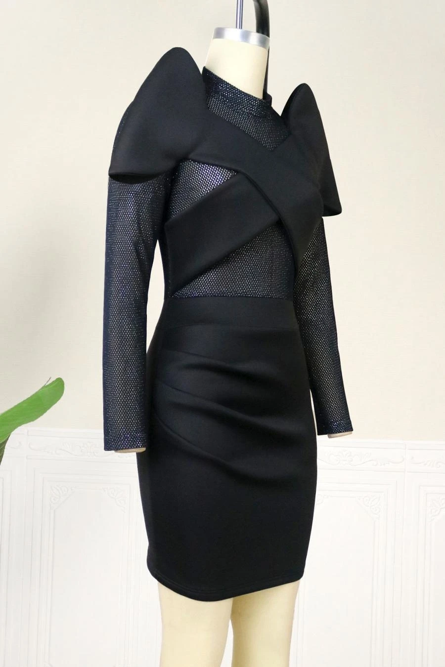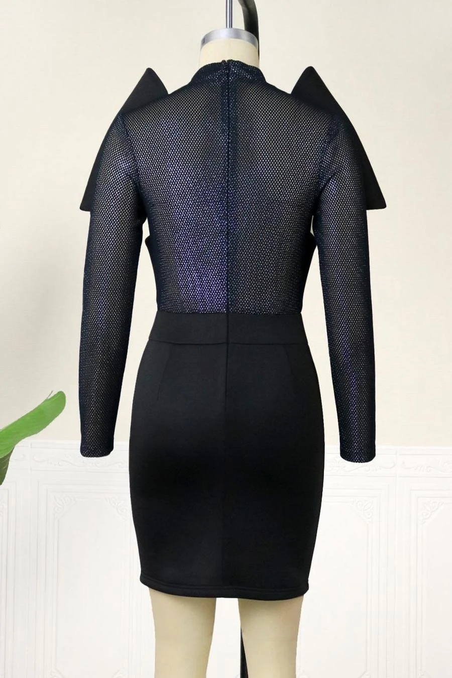 Sexy plus size slight stretch mesh see-through patchwork slim zip-up mini dress