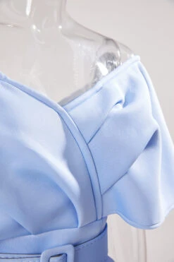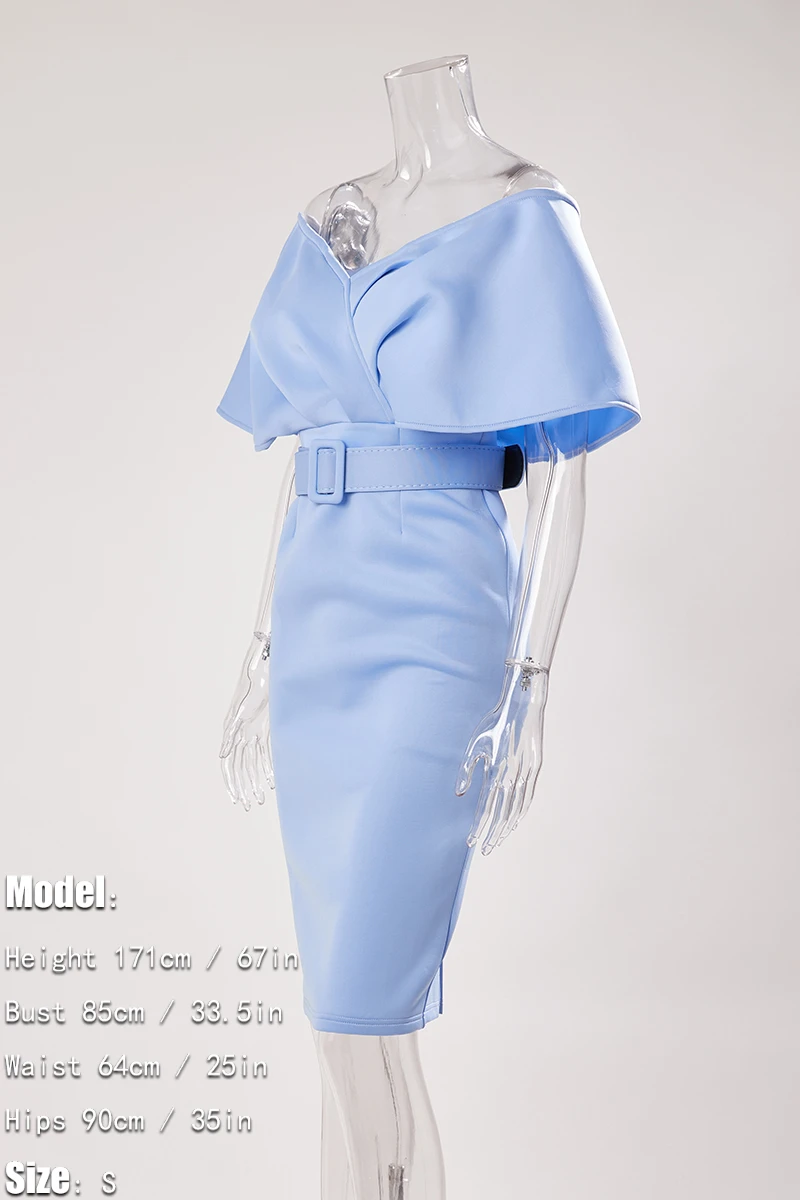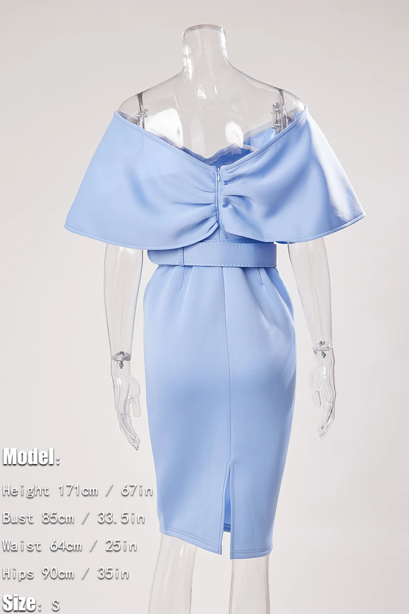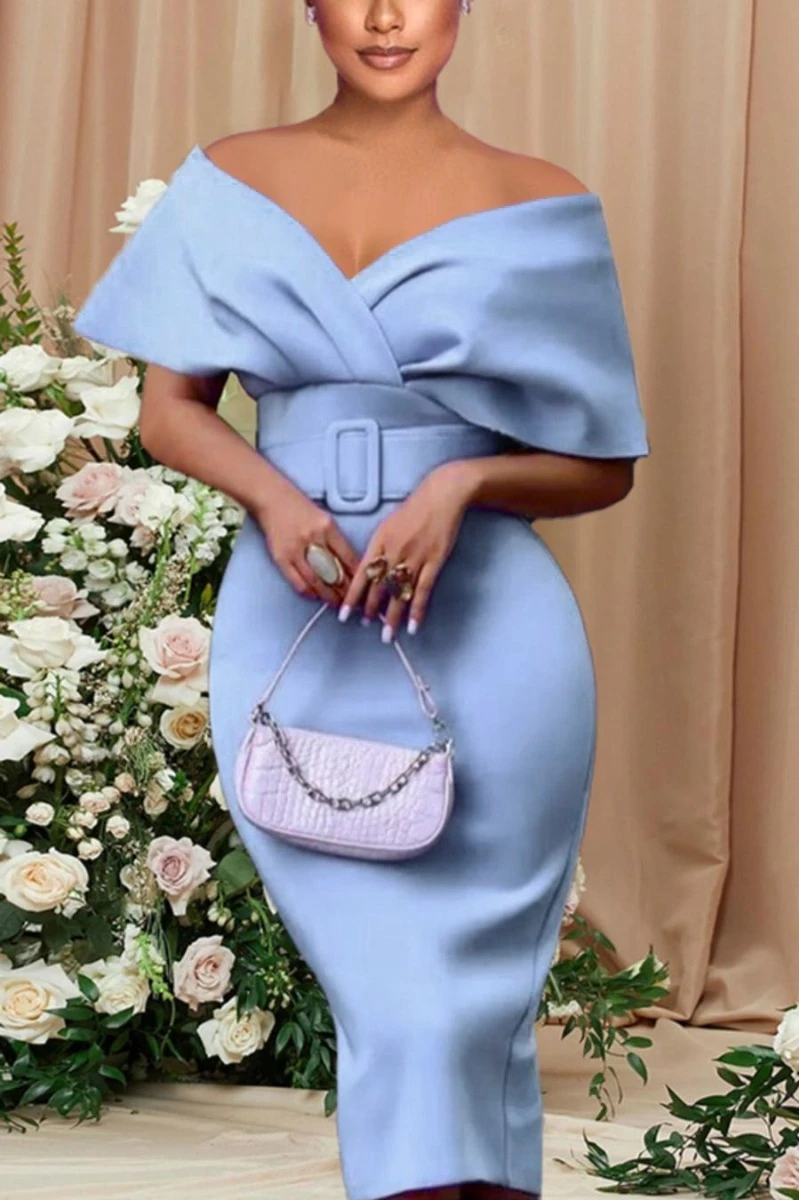Sexy plus size slight stretch off shoulder solid color with belt midi dress