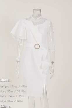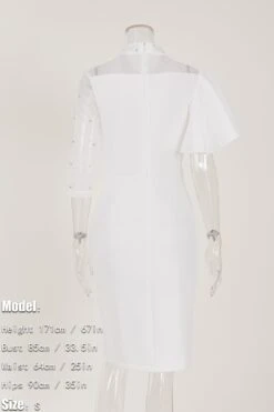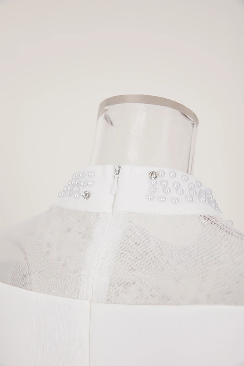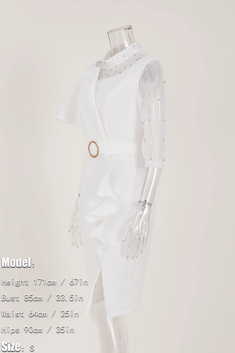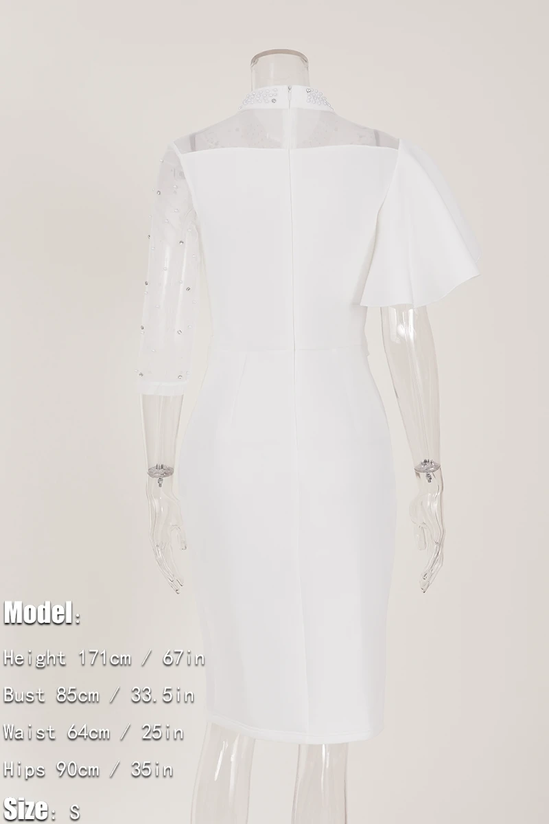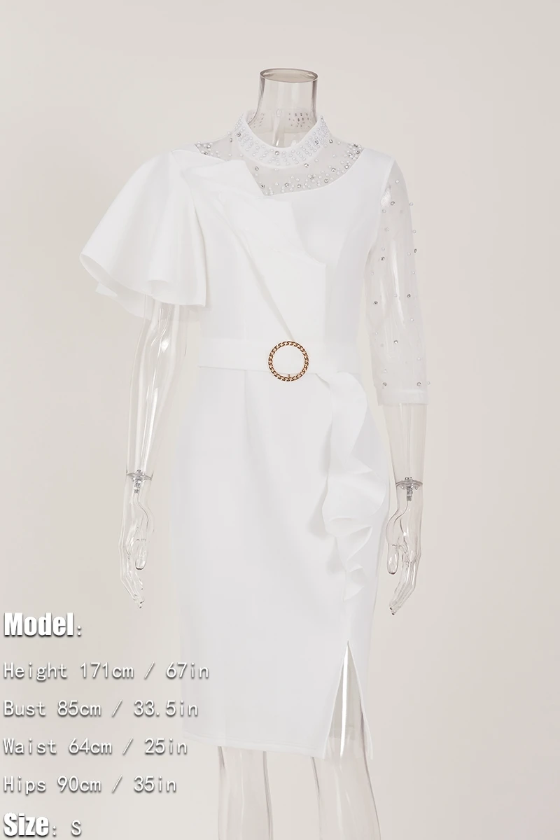 Sexy plus size slight stretch pearl rhinestone mesh stitching slit midi dress
