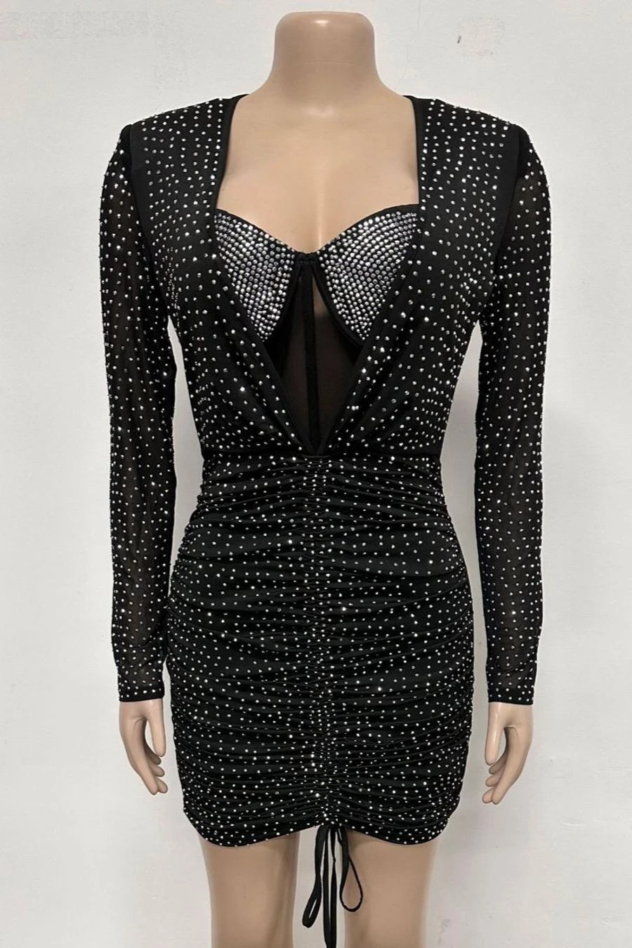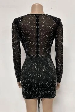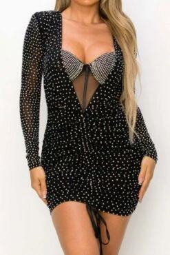Sexy plus size slight stretch rhinestone decor with underwire padded mini dress