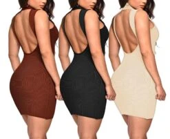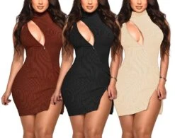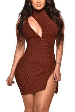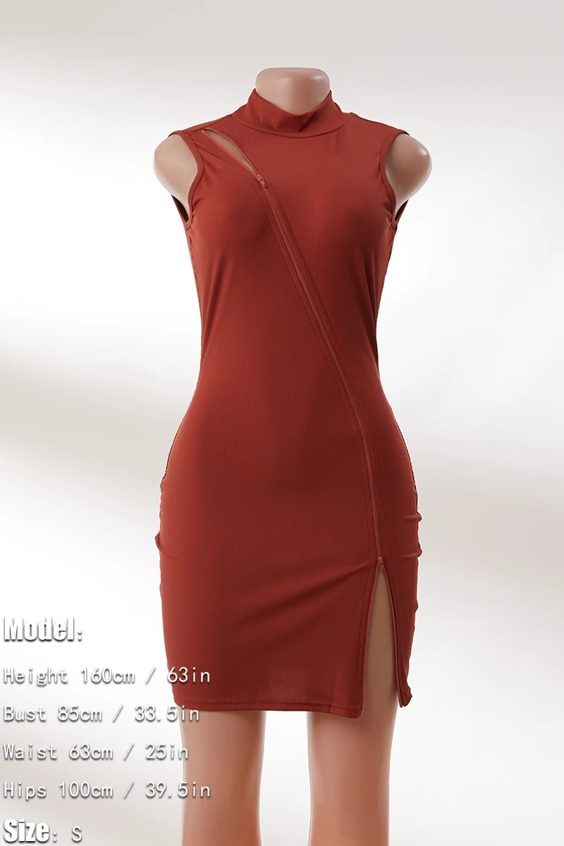 Sexy plus size slight stretch slim zip-up hollow backless mini dress