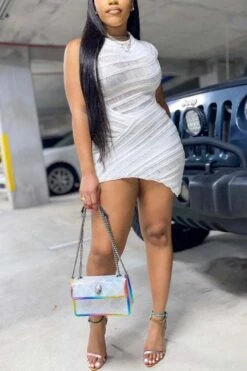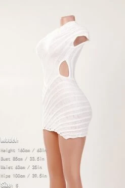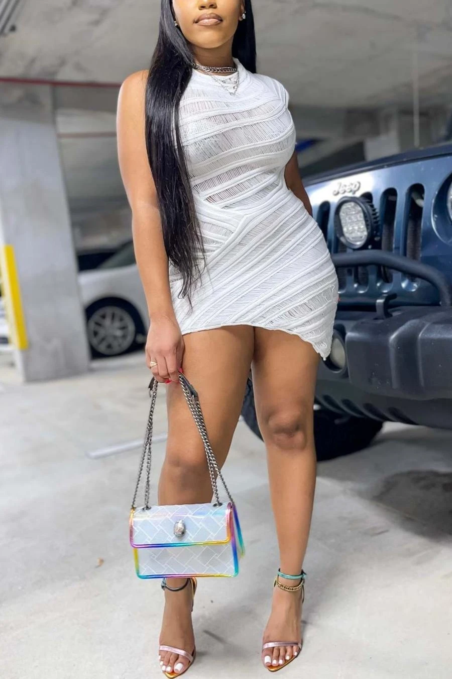 Sexy plus size slight stretch solid color hollow slim mini dress
