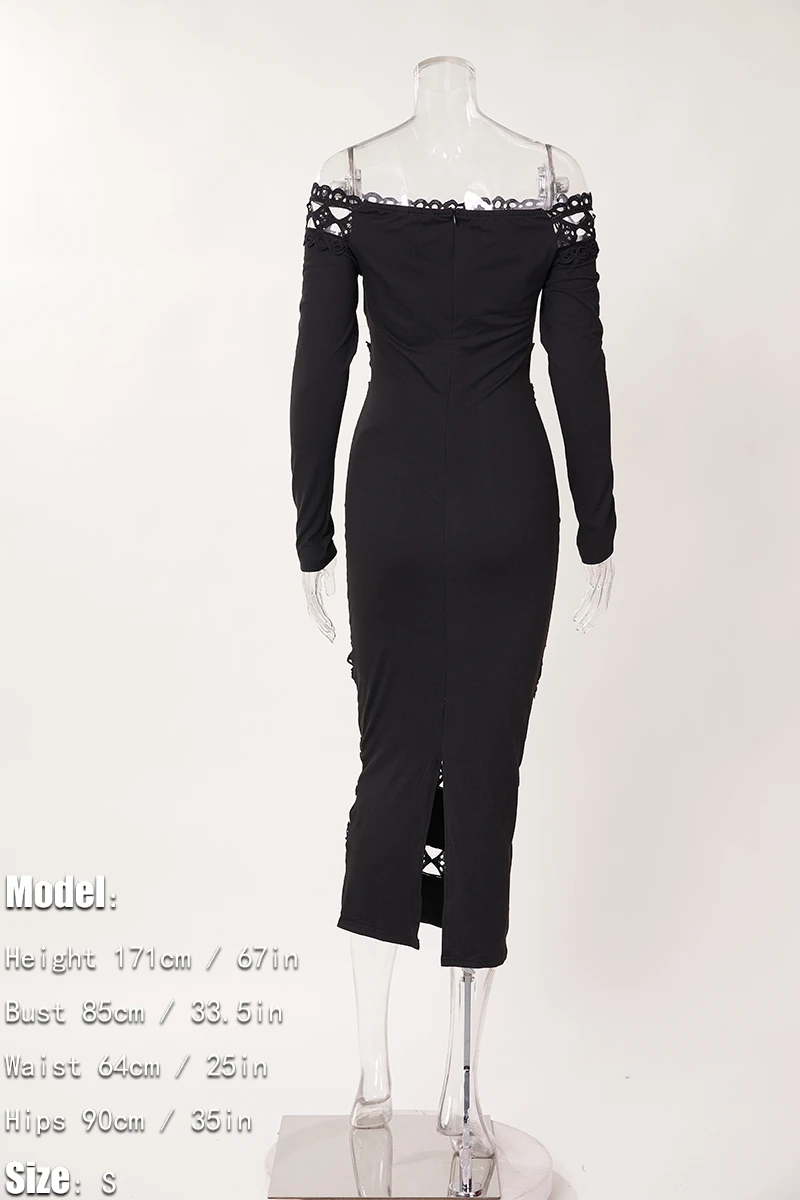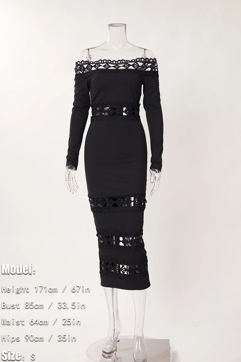 Sexy plus size slight stretch solid color off shoulder cutout slim maxi dress