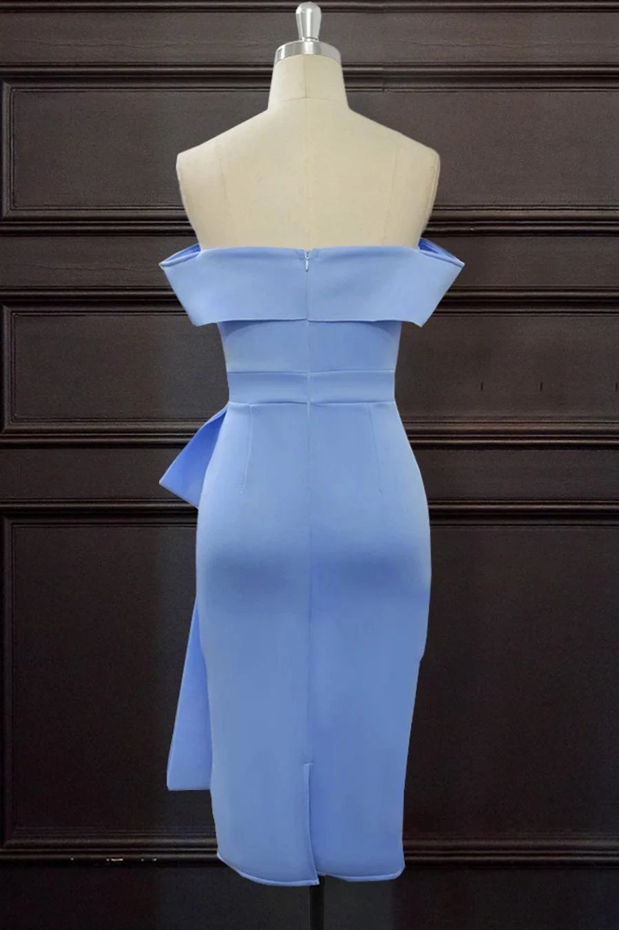 Sexy plus size slight stretch solid color off shoulder zip-up midi dress