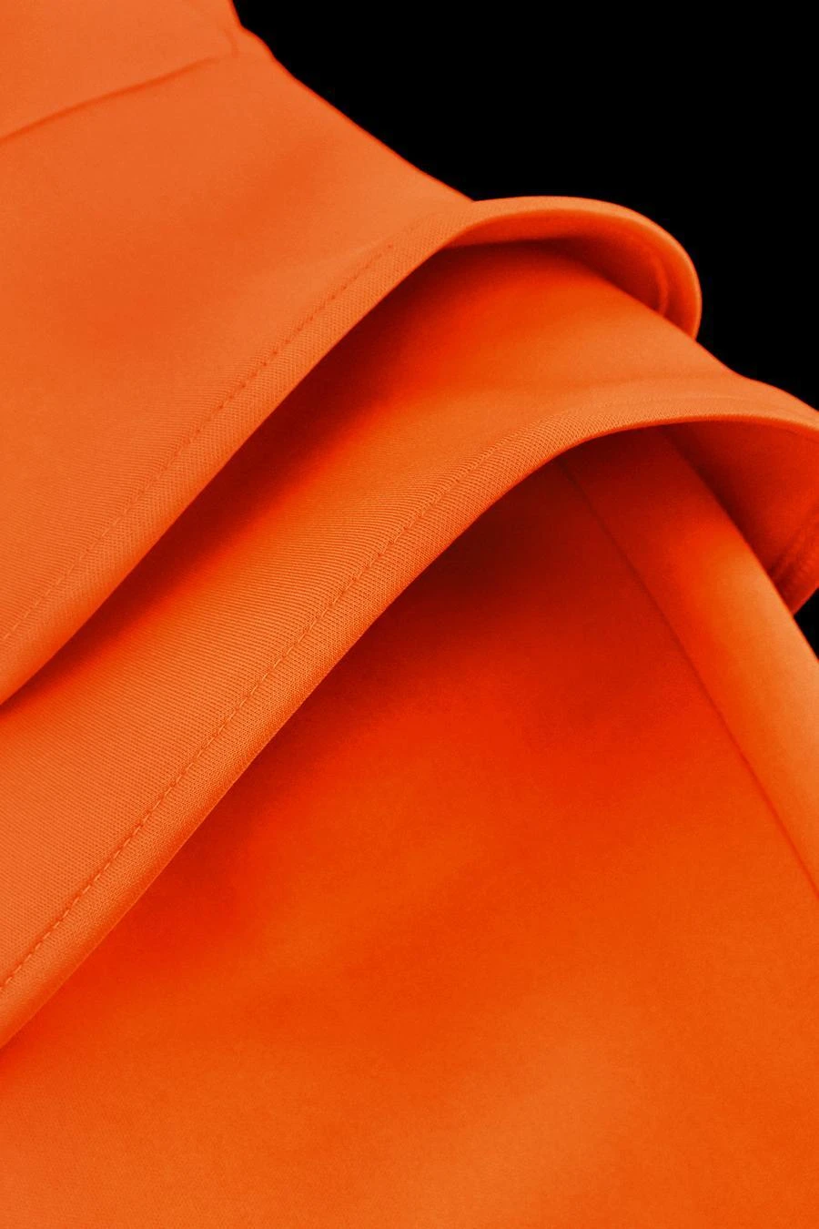 Sexy plus size slight stretch solid color ruffle decor slit midi dress