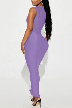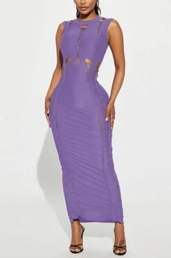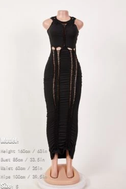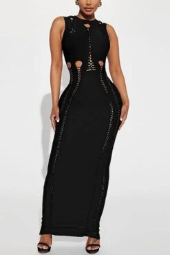 Sexy plus size slight stretch solid color slim hollow sleeveless maxi dress